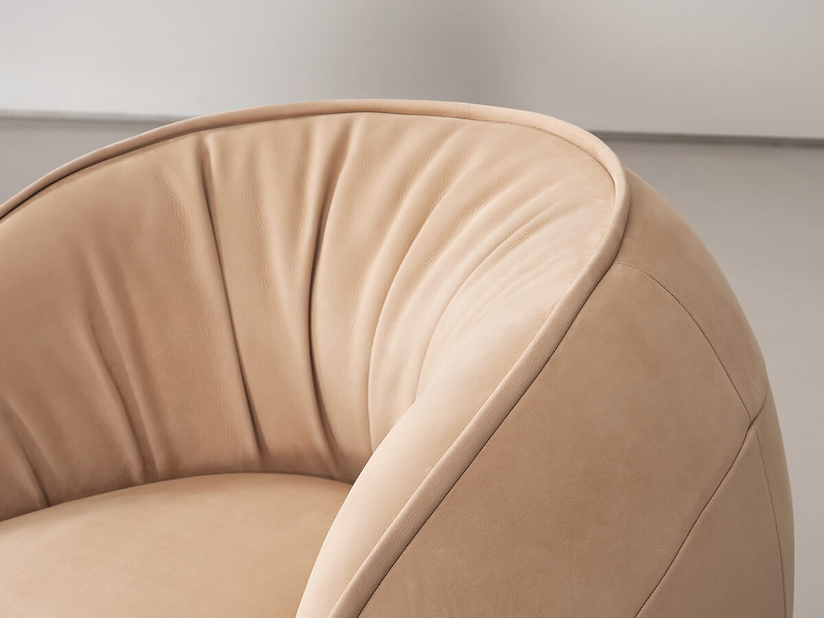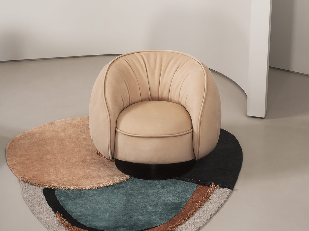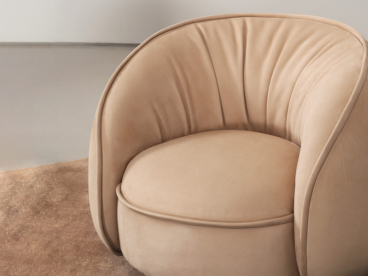 Dal genio creativo del duo Draga&Aurel nasce la collezione Leon, declinata in numerose proposte fra cui l’elegante divano e la sofisticata poltrona. In questa sua accezione più contenuta e gentile, Leon ricorda un uovo, o anche la corolla di un fiore gentilmente racchiuso a formare il comodo schienale e la morbida seduta capace di accogliere e cullare il corpo. La struttura è in multistrato e MDF. L’imbottitura in poliuretano espanso a densità differenziata con rivestimento in fibra acrilica. Ideale per la zona living, nonché per qualunque spazio della casa dove si desideri avere eleganza e personalità. *Caratteristiche tecniche: base girevole in metallo brunito spazzolato