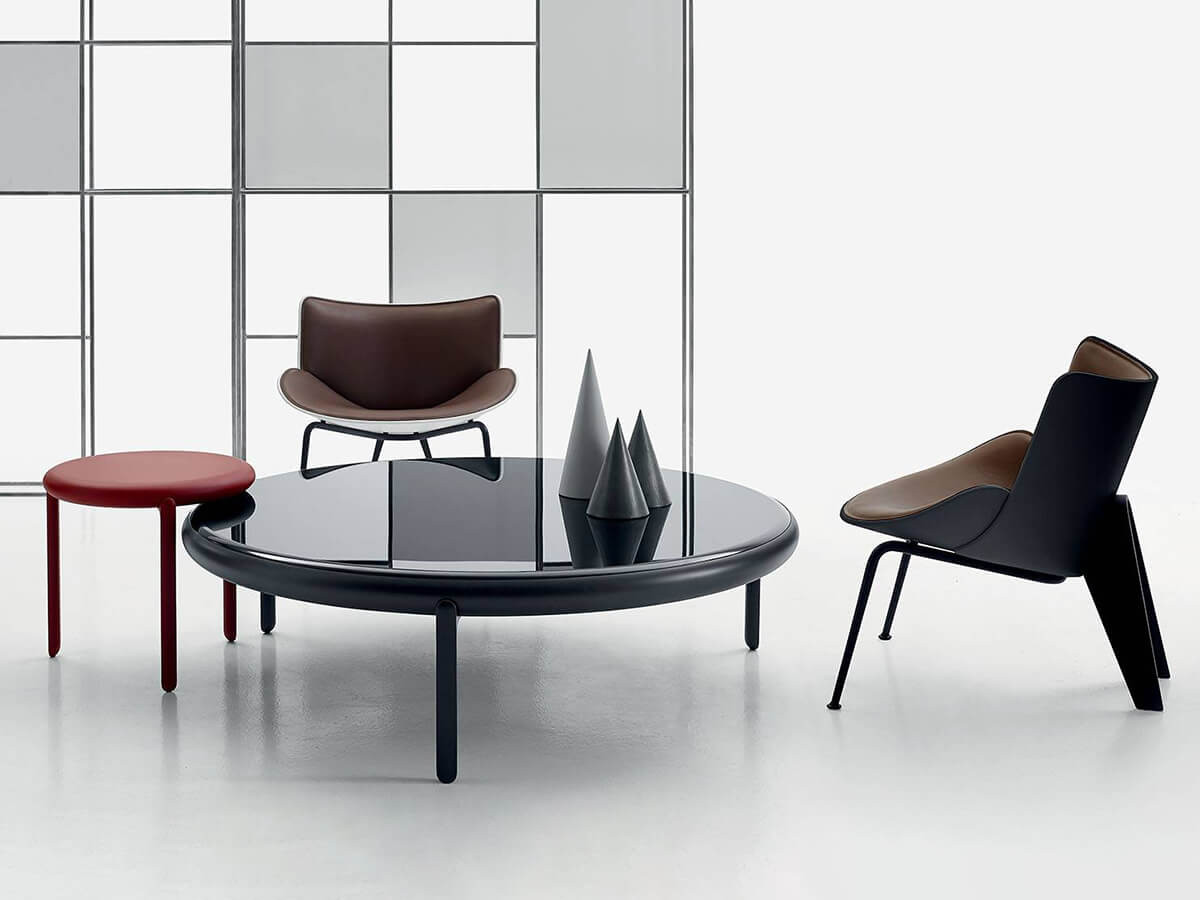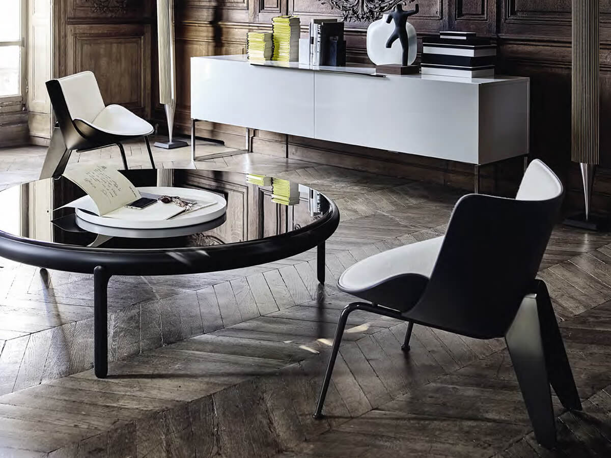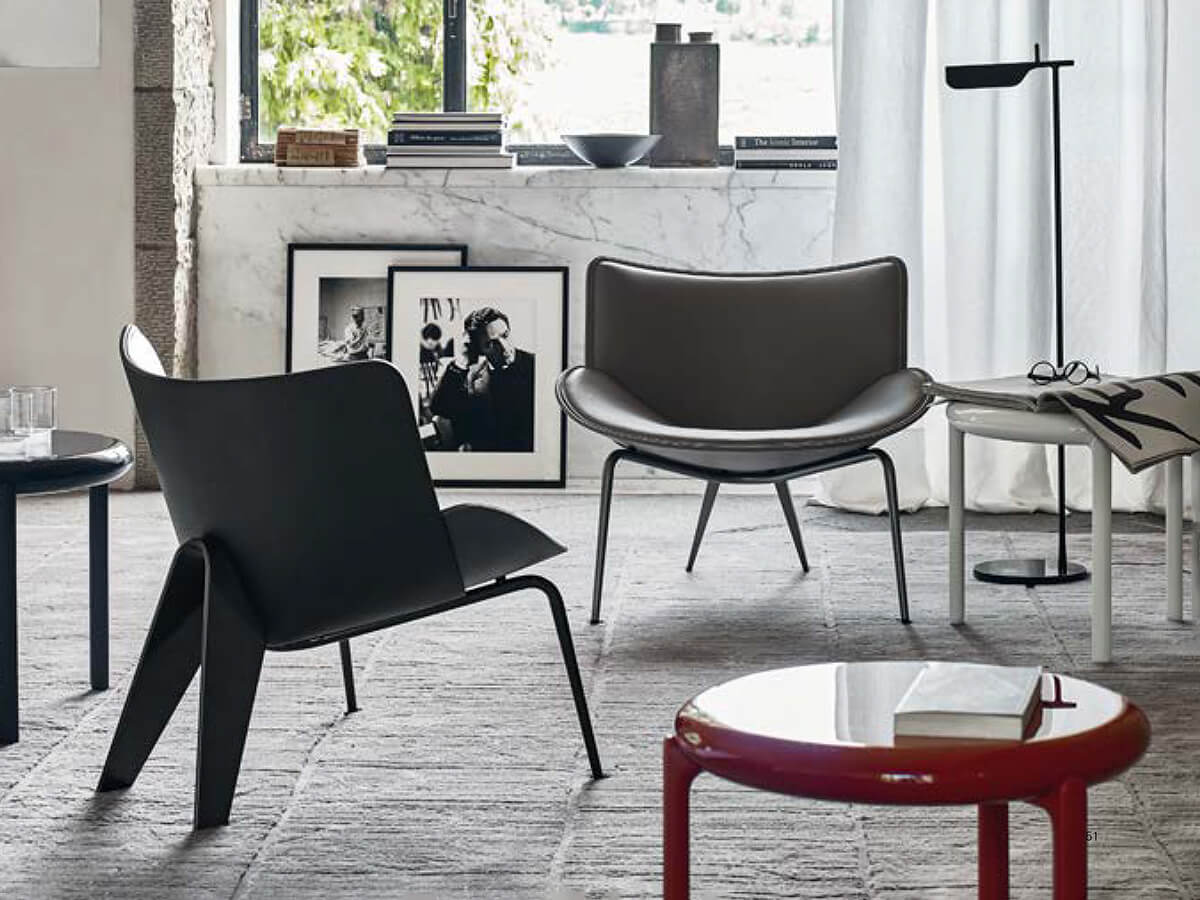 Un design d’eccezione caratterizza la poltrona Do-Maru, studiata in ogni dettaglio per esprimere la suggestione di volumi sovrapposti e linee pure. Questa seduta deve il suo nome alle antiche armature dei samurai, costruire con rigide placche di cuoio verniciato e decorato che avvolgevano il corpo dei guerrieri. Allo stesso modo Do Maru riprende questa tradizione unendo una coppia di scocche sovrapposte, ammorbidite da due contro imbottiture rivestibili in tessuto o pelle. L’elegante supporto posteriore è in fusione di alluminio, modellato con rigorosa attenzione e cura artigianale. Il tubolare metallico anteriore è invece più sottile, perfetto per alleggerire l’intera struttura senza tuttavia farle perdere il suo connotato formale.