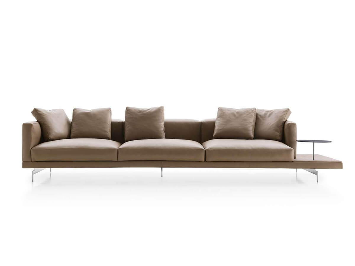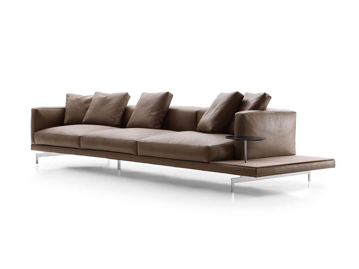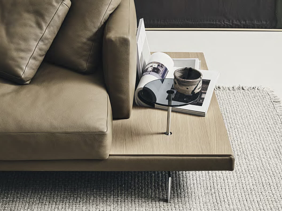 Dock è un divano pieno di originalità ed eleganza, frutto del sapiente disegno di Piero Lissoni e tradizione artigianale di B&B Italia. L’elemento costituente di Dock è il pianale che funge non solo da piano d’appoggio, ma da vera e propria base. Le notevoli configurazioni di Dock prevedono anche l’innesto di elementi extra quali braccioli imbottiti ed elementi di servizio direttamente ancorati al pianale. Profondità e altezze differenti concorrono nella gamma di pelli e tessuti opzionali. La collezione Dock prevede anche tavolini bassi per lo spazio dining, elegante aggiunta per dar vita a salotti d’eccellenza.*Caratteristiche tecniche: - versione con rivestimento in tessuto: braccioli e cuscini sedile realizzati con profilo canneté in abbinamento fisso di colori- versione bassa: piedini in materiale termoplastico nero