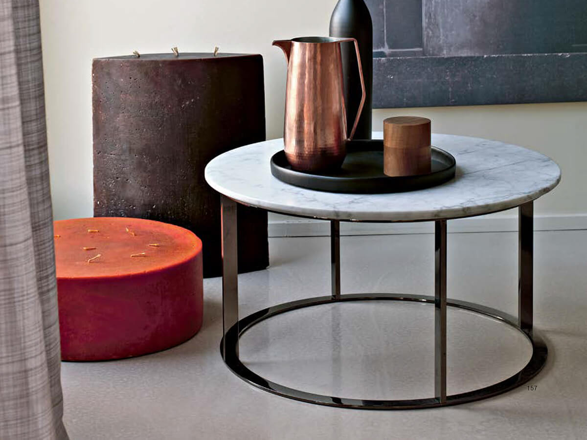 *Prezzo valido per la versione in Ø 39 cm x H.26 con piano in marmo Carrara e struttura in acciaio verniciato nickel bronzato (cod. MTR39B).