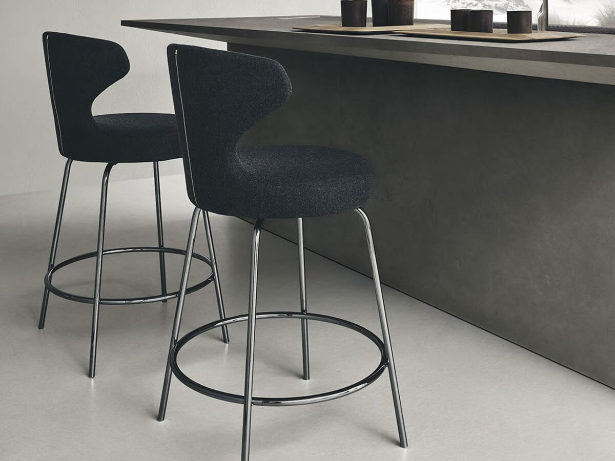 Dall’omonima collezione il cui nome e configurazione prendono spunto dal volto di una farfalla, Naoto Fukasawa propone lo sgabello Papilio, sintesi perfetta di eleganza e versatilità compositiva. Disponibile in diverse finiture di tessuto e pelle, Papilio ripropone anche in questa versione dining il caratteristico schienale ad ali, stretto in prossimità del sedile e sempre più avvolgente nella parte alta così da accogliere e sostenere la schiena. La risultante è una seduta estremamente comoda ed elegante, adatta ad ambienti raffinati. L’anello circolare posto sulle gambe in acciaio migliora ulteriormente la comodità, dando modo al corpo di posizionarsi secondo esigenza. Come sempre, un elemento che accentua non solo la qualità artigianale di B&B Italia, ma anche la capacità progettuale dei suoi designer.