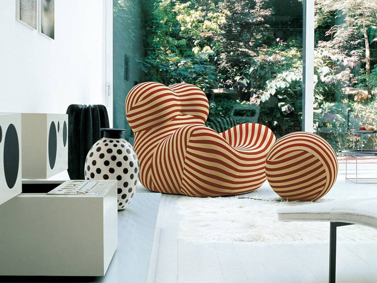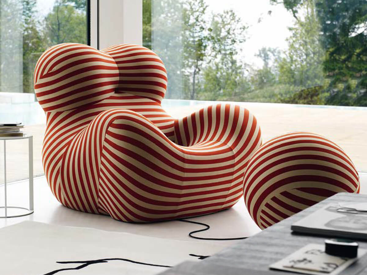 La poltrona Up nasce come esempio di design e ricerca stilistica d’avanguardia, capace di coniugare elementi artistici al sapiente know-how di B&B Italia. Gaetano Pesce disegna questo elemento d’arredo conferendogli connotati antropomorfi: un ampio grembo materno volto a ricordare le statue votive delle preistoriche dee della fertilità. Anche la sfera pouf è un simbolo, chiaro riferimento a una palla attaccata al piede femminile cui l’intera opera è dedicata. In questo progetto, B&B Italia riassume qualità artigianale e forza espressiva, rompendo le convenzioni per creare un modello di pura eleganza e comfort figurativo. Ideale negli spazi living, Up si presta a molteplici usi, spiccando tanto in contesti casalinghi quanto in spazi più pubblici. Disponibile in diverse versioni come la Up Junior, Up 50 e Up 2000 è anche presente in versione divano.