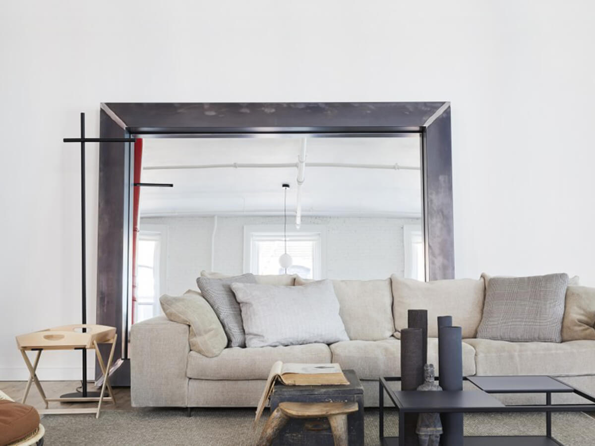 Una solida cornice in lamiera grezza non trattata , saldata a mano con sapiente artigianalità, caratterizza lo specchio rettangolare Art, firmato da Piero Lissoni per Boffi. Disponibile in misura fissa di grandi dimensioni , ma anche con misure a richiesta del cliente, lo specchio Art può essere appoggiato a terra o appeso a muro e disposto sia in verticale che in orizzontale, a seconda delle necessità. Il trattamento della cornice con una speciale vernice trasparente opaca ne blocca l’ossidazione, preservandone la naturale bellezza. Questo originale complemento d’arredo può essere facilmente inserito sia in residenze private che in ambienti pubblici come in contesti di contract.