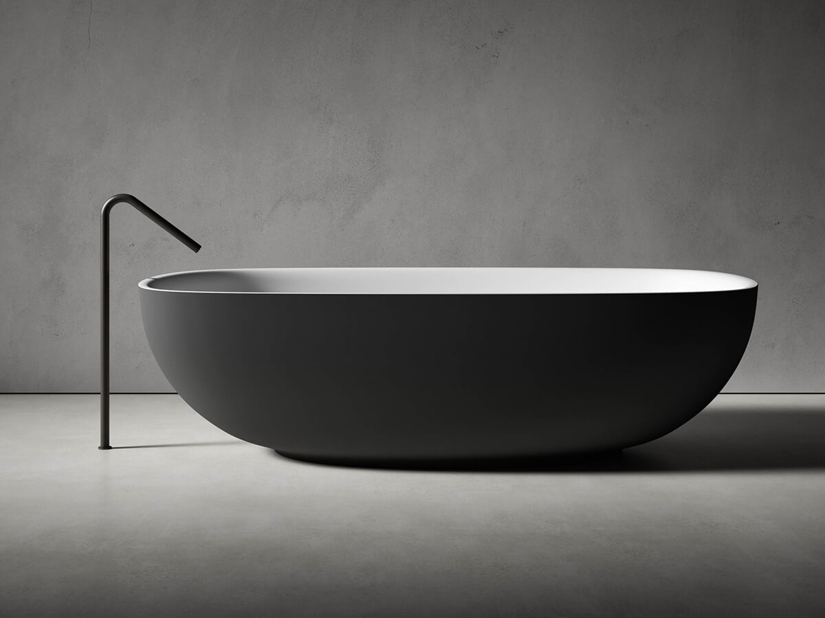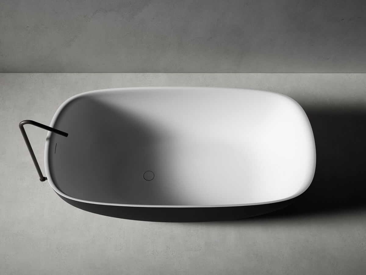 La vasca da bagno Faroe di Boffi incarna al meglio lo stile del suo designer Piero Lissoni, nel quale il lusso discende da una semplicità estrema in cui a emozionare sono la chiarezza delle forme e l’armonia delle proporzioni. In Faroe le sottili pareti si allargano gradualmente a partire da una base ristretta, delineando un bacino interno ampio e spazioso privo di curve improvvise. La forma è quella classica di un rettangolo ovalizzato, capace di accogliere il corpo nella massima comodità garantendogli grandi spazi. Faroe è realizzata in Cristalplant bianco, rivestibile esternamente in vernice Soft Touch colore grigio antracite. Caratteristiche tecniche: completa di piletta cromo, sifone e troppopieno.