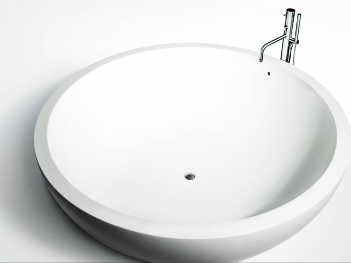 La vasca Tevere di Boffi, firmata dal designer Claudio Silvestrin, si caratterizza per l’inusuale forma circolare. Enorme e scenografica, Tevere ha un diametro di ben 190 cm, proponendosi quindi come protagonista di ambienti bagno spaziosi e lussuosi e potendo ospitare agevolmente più persone in contemporanea. L’opulenza che richiama contrasta con l’austera serenità delle sue forme, basate sull’equilibrio di un cerchio perfetto enfatizzato dal forte spessore dei bordi perimetrale che culminano in un pianetto sufficientemente spesso da permettere anche l’appoggio di oggetti.. Tevere è costituita da un unico blocco in Corian, materiale resistente e facile da pulire. Caratteristiche tecniche: completa di piletta inox, sifone e troppopieno