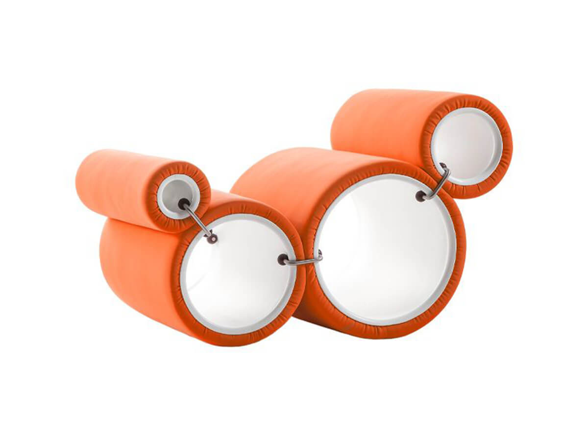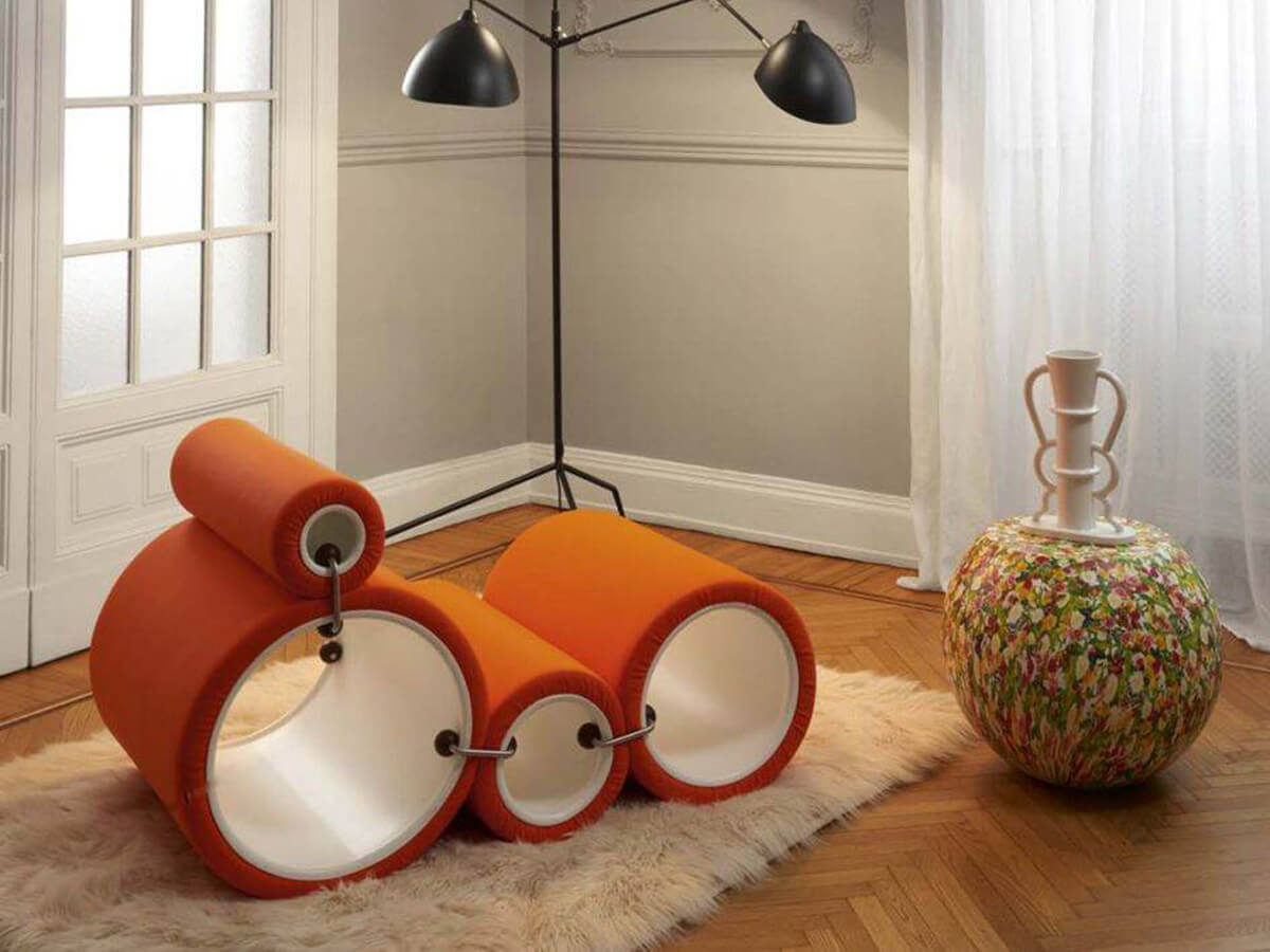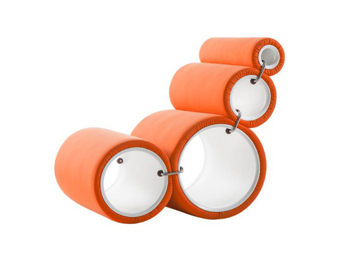 La poltrona Tube Chair di Joe Colombo è una delle grandi icone immortali della storia del design italiano. Prodotta inizialmente da Flexform, è oggi uno dei fiori all’occhiello del catalogo Cappellini. È stata progettata nel 1969 e rappresenta uno dei primi esempi di sperimentazioni nell’ambito nel Design Radicale che cominciava a muovere i primi passi proprio in quagli anni, discostandosi dalle forme precise e funzionali che caratterizzavano gli arredi del Dopoguerra. In Tube Chair seduta, base e schienale sono intercambiabili: la poltrona è infatti costituita da quattro moduli cilindrici cavi di diverse dimensioni, liberamente posizionabili e fissati attraverso dei ganci, che permettono alla poltrona di assumere configurazioni di volta in volta diverse: Tube Chair può essere fruita come una bassa chaise longue così come una più composta bergère, sempre mantenendo in primo piano il suo carattere spiazzante così caratteristico di un’epoca.