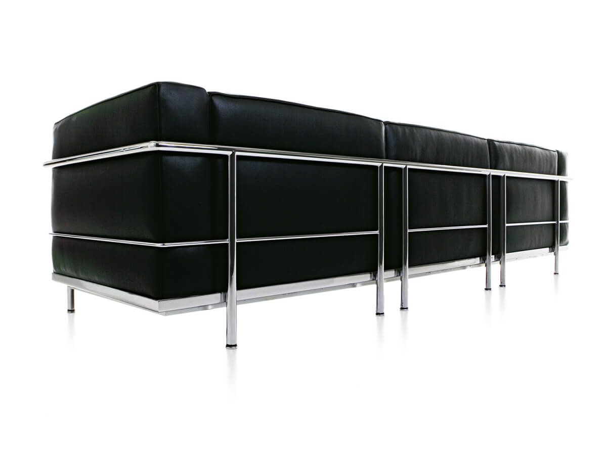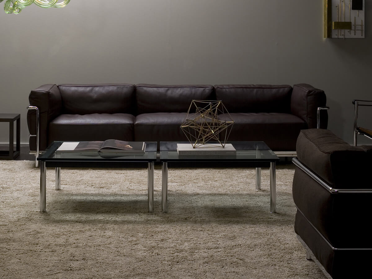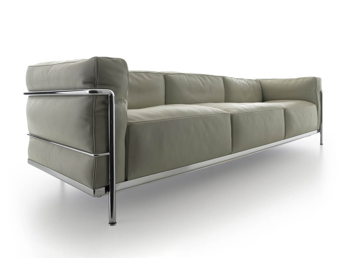 Nato nel 1928 dalla mente creativa di Le Corbusier, Pierre Jeannaret e Charlotte Perriand, il divano 3 Fauteuil Grand Confort Grand Modèle rientra nella grande collezione declinata in iconici divani, poltrone e chaise longue di indubbio gusto stilistico. Disponibile sia nella versione a due posti che in quella a tre posti, si distingue dal divano 2 Fauteuil Grand Confort Petit Modèle per il design della seduta, più semplice e compatto, sempre disponibile con rivestimento dei cuscini in tessuto o pelle. L’eleganza del Divano 3 Fauteuil Grand Confort Grand Modèle risiede non solo nella scelta di escludere una parte della base per rendere il modello più semplice ed essenziale, ma anche nella reinvenzione dell’intera struttura, più bassa e capace di donare un ulteriore tocco di stile al design originale. Resta inalterata la gabbia esterna di tubi in acciaio verniciato o cromato, caratteristici dell’intera collezione.