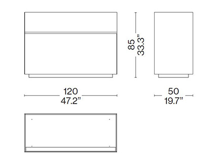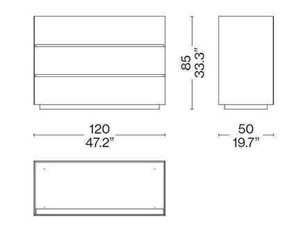 L.120 x P.55 x H.85 cm con n.03 Cassetti