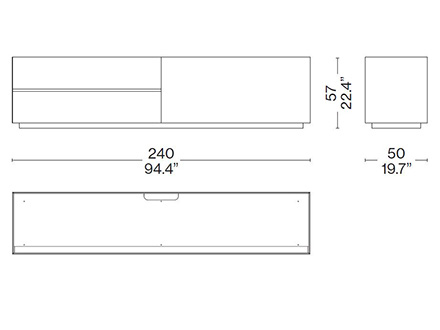 L.240 x P.57 x H.57 cm con n.04 Cassetti