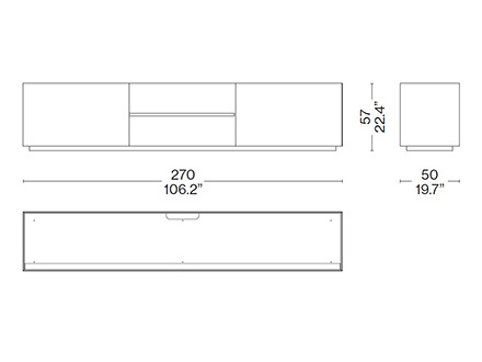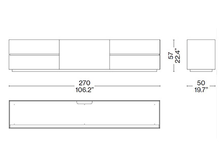 L.270 x P.57 x H.57 cm con n.02 Cassetti e n.02 Cassetti Alti Laterali