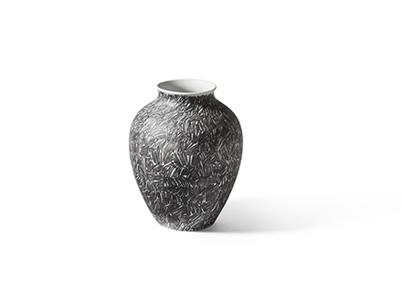 Post Scriptum è un vaso dalle molteplici forme, capace di coniugare eleganza, bellezza e uno spiccato senso creativo che sfocia nel mondo dell’arte e soprattutto, del disegno. I disegni di Formafantasma diventano veri e propri decori sulla porcellana grazie all’abilità di Cassina e all’esperienza dei maestri pittori Ginori1735. La collezione comprende diversi vasi in forme diverse, ognuna studiata per dare maggiore risalto al disegno e creare con esso un dialogo di intenti. La particolarità della lavorazione consiste nel decoro “a graffito” sulla porcellana bisquit ottenuta con una cottura diretta: il graffito viene disegnato sulla porcellana con un pigmento nero e successivamente fissato, per una resa unica ed estremamente personale. Il vaso ad Orcino si distingue per la forma più bombata e priva di angoli netti. Sono presenti diverse scelte grafiche fra cui una più chiara, con pochi tocchi neri e una più scura, dove il tratto diventa più presente ed evidente.