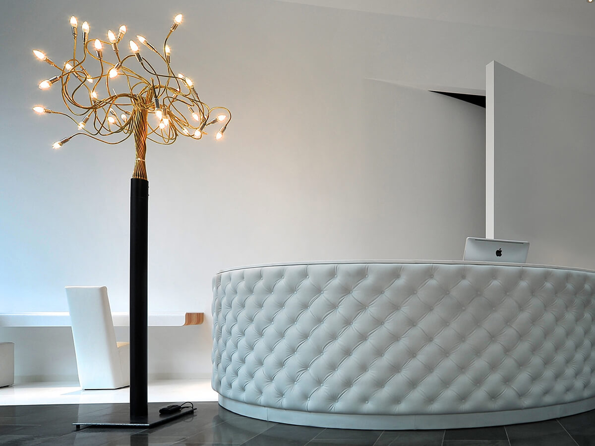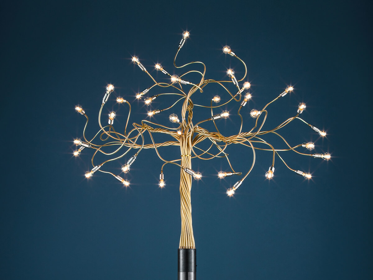 Tributo alla bellezza e all’idea di interazione con l’oggetto-soggetto lampada che sta alla base della collezione Turciù ideata da Enzo Catellani, la lampada da terra Albero della Luce è da considerarsi una vera e propria scultura luminosa. E’ formata da una base in ferro grezzo cerato da cui si dipartono 36 flex modellabili in ottone che riproducono artisticamente la chioma di un albero illuminato da lampadine Led. Il wireless dimmer di serie permette di proiettare nello spazio circostante riflessi di luce di estremo fascino, per un’atmosfera magica. Questa lampada risulta essere un elemento unico capace di catalizzare lo sguardo e di valorizzare qualsiasi ambiente.