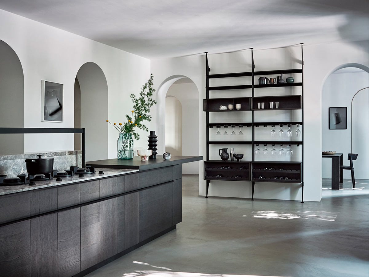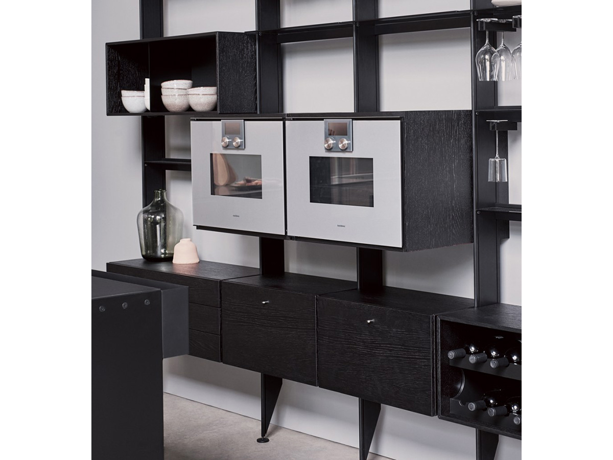 Una reinterpretazione in chiave assolutamente contemporanea dei sistemi di libreria anni ’50 arricchiti da nuove funzioni per soddisfare le esigenze di una società sempre più fluida e in fermento, dove gli spazi della casa non sono più compartimentati ma ricchi di ibridazioni. Cucina e salotto spesso si ritrovano abbracciati in un unico ambiente, non più divisi ma uniti; l’arredo deve necessariamente essere declinabile in entrambi questi sensi, per dare modo a chiunque di vivere il più liberamente possibile la propria casa. L’armonia di The ’50 consiste proprio nell’armonizzare elementi di radice diversa trasformandosi a seconda dell’esigenza in una attrezzatura da cucina o una libreria per il living.
