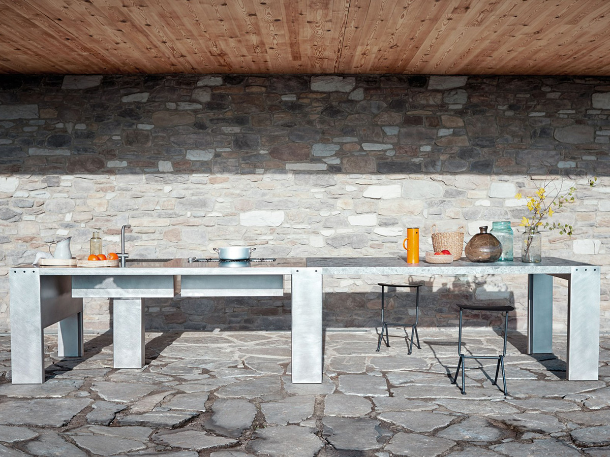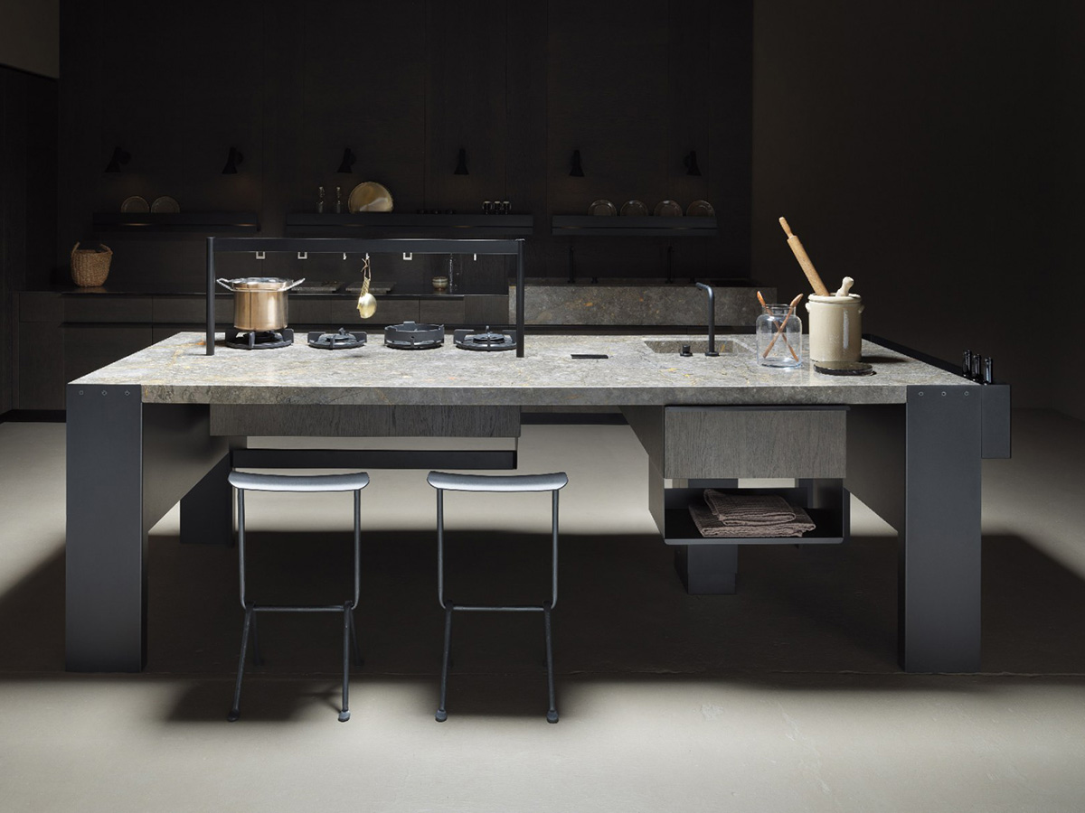 Più che un bancone, Williamsburg è una vera e propria stazione di lavoro, ispirata all’immagine del ponte d’epoca rivisitato in chiave estremamente moderna e contemporanea. Due solide strutture laterali sorreggono un top sottile e affusolato che non appesantisce la struttura ma la slancia dandole un’indole più casual. Per la sua configurazione si presenta come una cucina assolutamente innovativa, capace di stupire e incuriosire coloro che sono abituati a più canoniche proporzioni. La gamma di finiture e materiali disponibili per Williamsburg rende possibile una personalizzazione pressoché infinita, dove ognuno è in grado di donare il proprio tocco personale all’arredo della zona giorno. Interessanti sono anche i materiali utilizzati che spaziano dalle più nuove materie alle pietre antiche, ideali per una sensazione d’insieme più sobria e compatta.