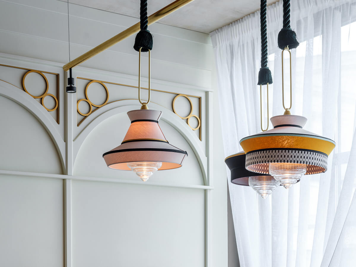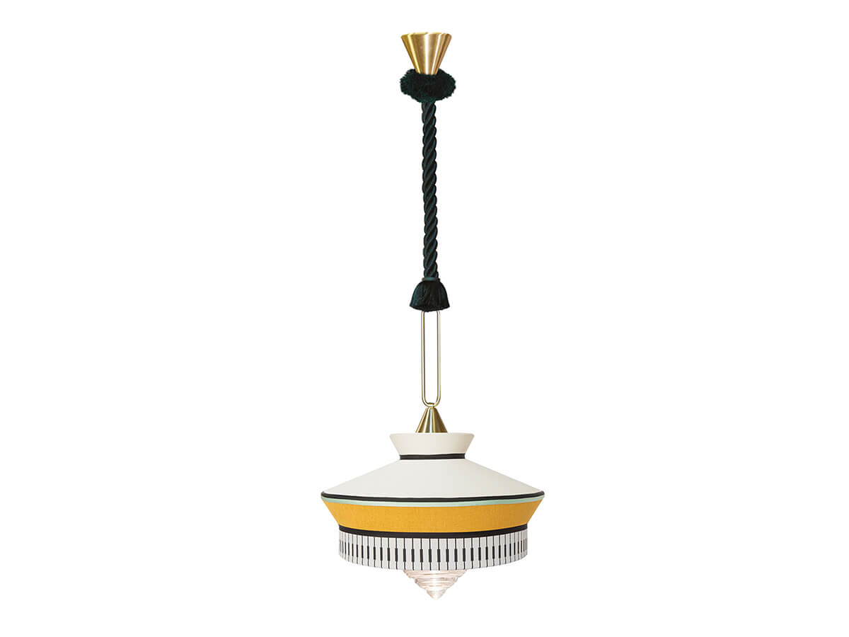 *Prezzo valido per la versione Martinique in ø 39 x H.271 cm con struttura in ottone satinato e corda in seta intrecciata verde muschio – paralume in tessuto colore Building – lampadina esclusa (cod. ACAM.002019 – P45006).