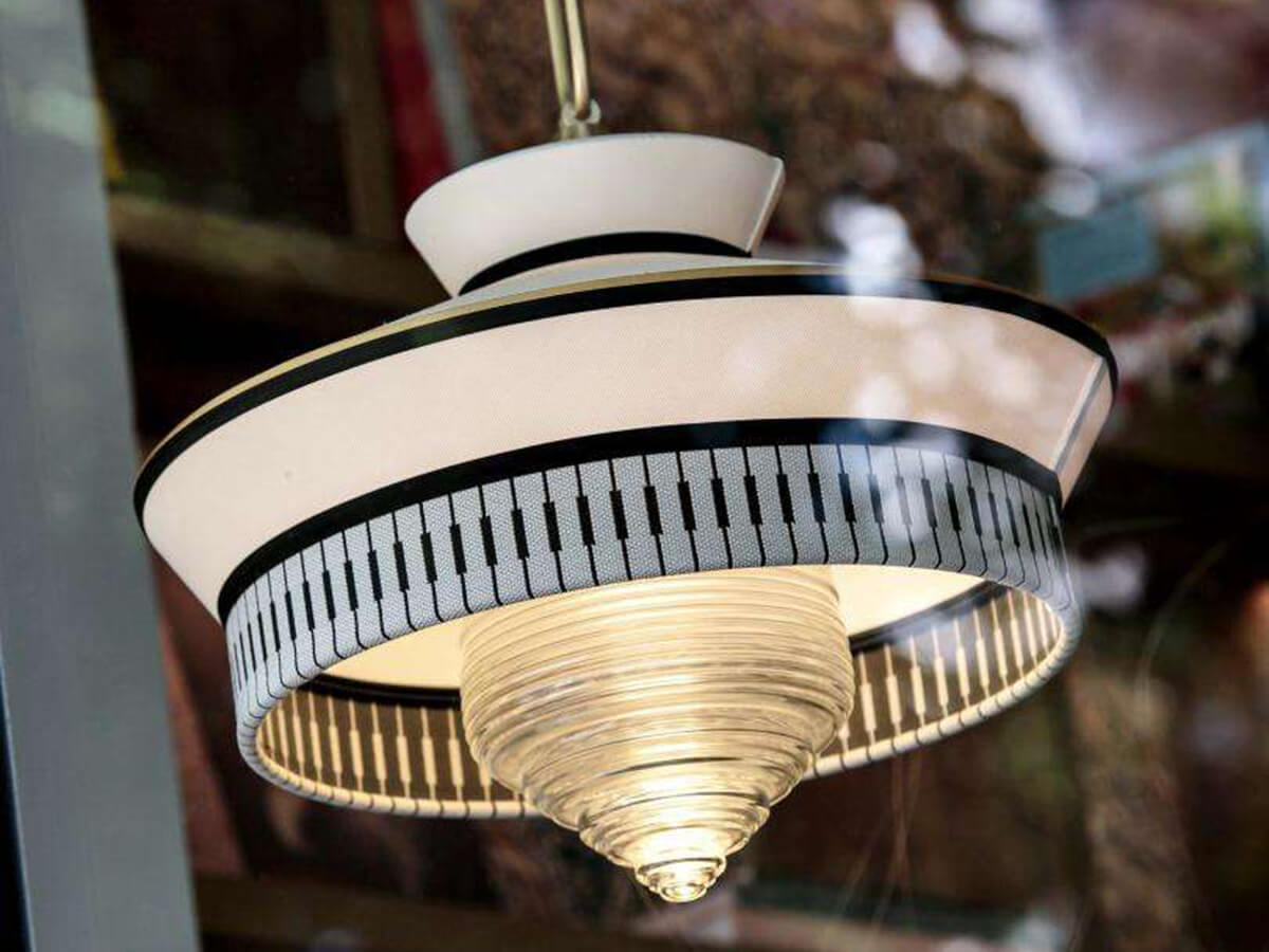 Un elemento d’arredo dal design peculiare, capace di fondere la solidità del metallo con colori e ispirazioni fortemente ispirati alla cultura sudamericana e tropicale. Calypso vive dell’ispirazione al periodo art déco, con tessuti le cui trame e motivi geometrici in bianco e nero mescolati a colori accesi riuscivano a dar vita a suggestioni particolarmente gradevoli e personali. Il risultato è molto originale, ideale per ambienti diversi e altamente caratterizzati dove si senta il bisogno di una ventata di stile. A sostegno della struttura si può notare un cordone di seta intrecciato, forte e resistente al tempo.