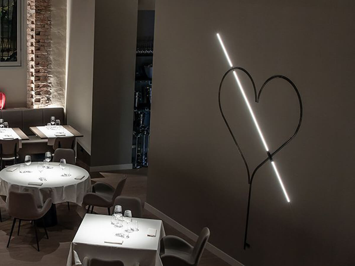 Semplicità e concretezza sono sempre i punti focali dell’arredo di Davide Groppi, votato alla sperimentazione e alla creazione di forme inusuali. Stupire, accattivare e divertire sono concetti fondamentali per capire lo stile di questo marchio e anche qui, nella lampada a parete Rail, giocano un ruolo fondamentale. I binari di un trenino elettrico vengono utilizzati per disegnare paesaggi immaginari in cui la luce rappresenta a sua volta altri binari, altri incroci, altre grafiche uniche e distintive. Rail rappresenta un sottile confine fra utilità e rappresentazione, design e arte.
