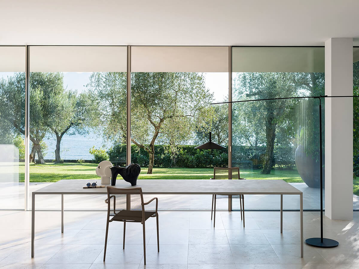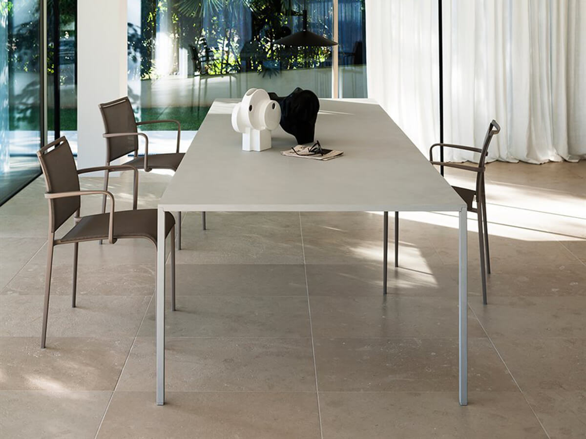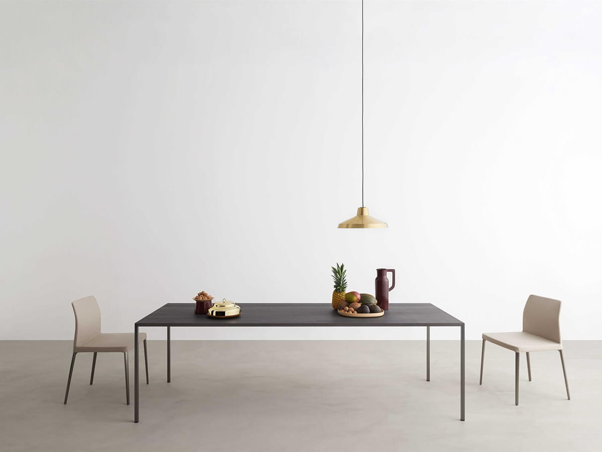 Un elemento d’arredo unico nel suo genere, capace di incarnare la definizione stessa di “tavolo”, divenendone suo più alto archetipo. 25 Prende il nome dallo spessore minimo e costante del piano e della gamba, studiati appositamente per richiamarsi e creare in tale fissità una grazia compositiva. Avanguardia tecnologica del 2014, 25 è stato premiato con il Compasso d’Oro per l’effetto di stupore che suscita la sua esilità in rapporto alle grandi dimensioni che il tavolo può raggiungere. La finitura può essere in cemento grigio luna, rovere naturale e rovere grafite, disponibili a loro volta in diverse dimensioni e proporzioni: quadrata e rettangolare. Le numerose varianti proposte sono state studiate da Desalto per venire incontro alle esigenze del nostro vissuto contemporaneo.