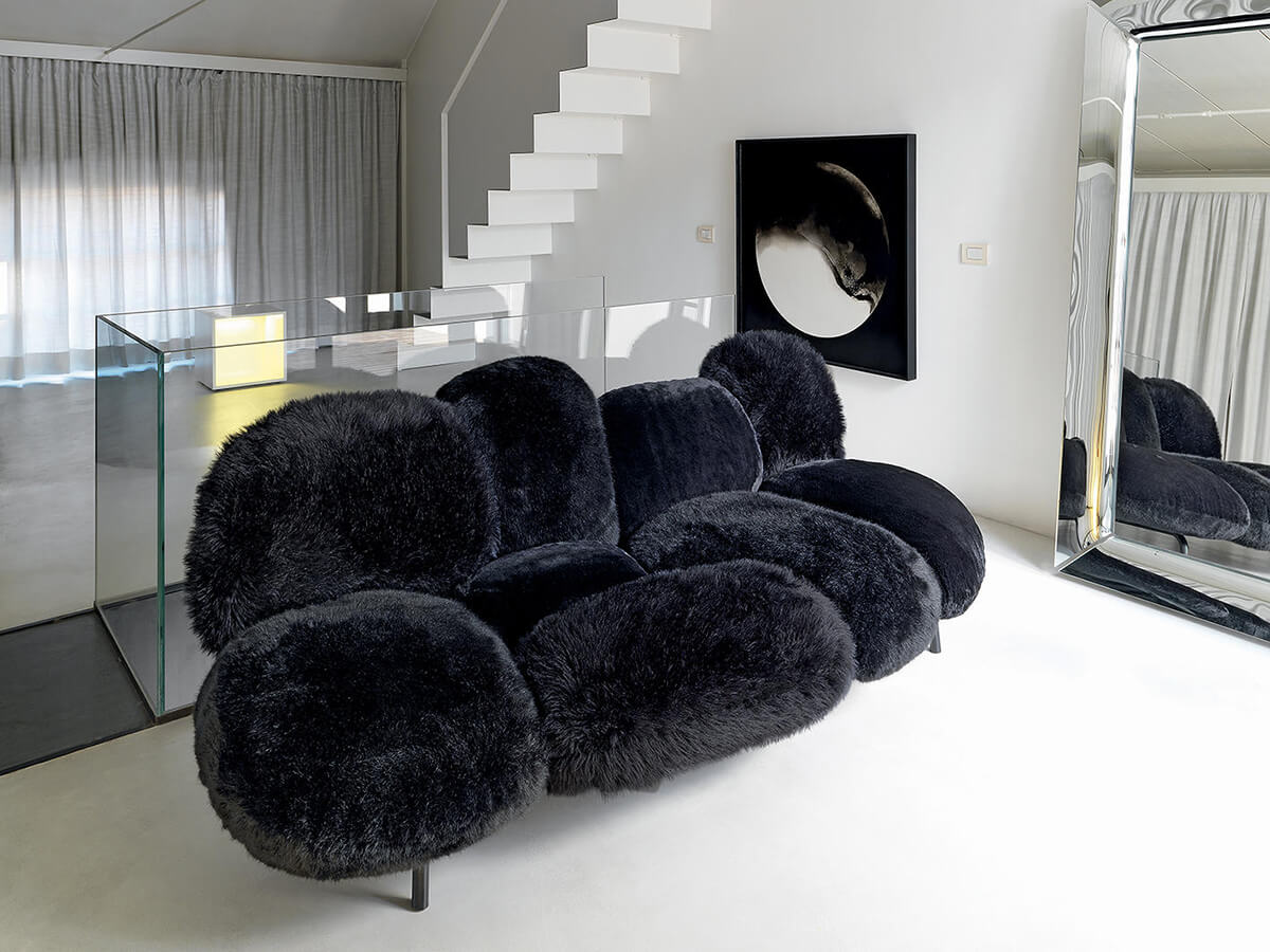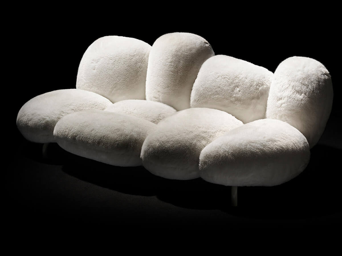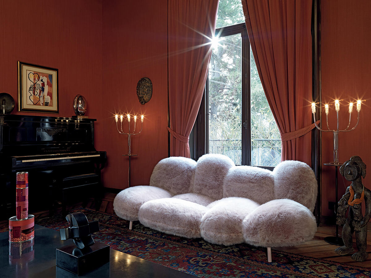 Eccentrico ma irresistibilmente vezzoso, il divano Cipria di Edra è morbidissimo e piacevole al tatto grazie al suo rivestimento in pelliccia ecologica. È costituito da nove differenti cuscini con funzione strutturale, le cui forme ricordano dei grossi batuffoli o dei piumini da cipria. Come per tutti i divani Edra, Cipria associa un’estetica stravagante e anticonformista a un’attenzione assoluta per il comfort, enfatizzato dall’esclusiva imbottitura in Gellyfoam. Porta la firma di Fernando e Humberto Campana, alfieri del design brasiliano contemporaneo, e assume un carattere diverso a seconda del colore scelto per la pelliccia: nella versione bianca pare quasi un accogliente batuffolo di neve, mentre sui toni scuri è capace anche di richiamare una certa austerità. Dà però il meglio di sé nell’immancabile color rosa cipria, che accentua al massimo il concetto di fondo.