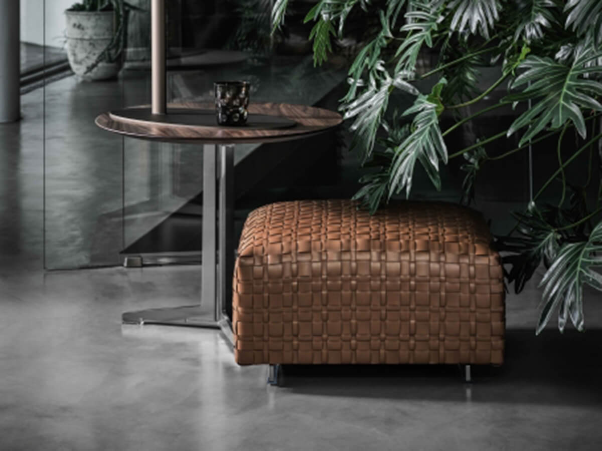 Un elemento d’arredo estremamente versatile, capace di conformarsi a diverse esigenze d’arredo donando a ogni spazio un tocco di stile e qualità fuori dal comune. Nelle diverse dimensioni disponibili, Bangkok diventa un accessorio per ogni ambiente della casa, dal living allo spazio notte, senza trascurare spazi più ambivalenti e ricchi di possibilità. La struttura è in legno e metallo, imbottita in poliuretano e dacron e rivestita in tessuto accoppiato. Il pouf Bangkok può essere rivestito in tutti i tessuti e le pelli della vasta collezione Flexform, sebbene raggiunga la sua massima espressione nel rivestimento in cuoio o camoscio intrecciati. *Caratteristiche tecniche: disponibile rivestito in pelle o tessuto (rivestimento liscio) o in cuoio intrecciato