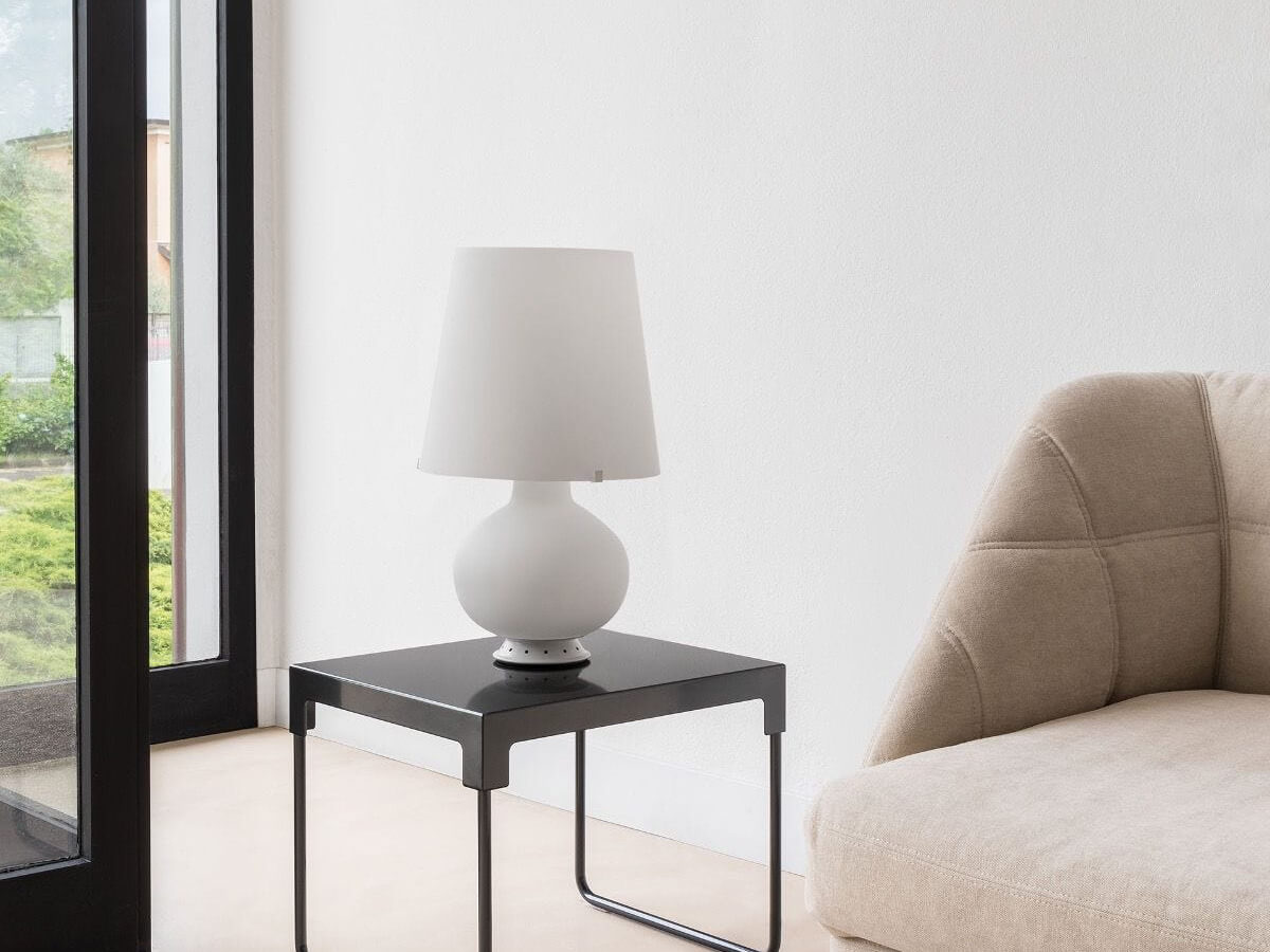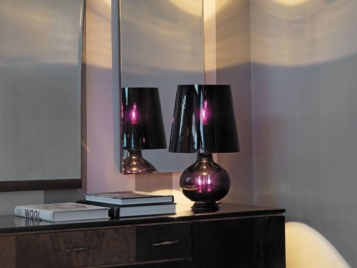 Un’icona del passato, che dal 1954 mantiene intatto il proprio valore e pregio artistici. Nata dal celebre maestro vetraio e decoratore francese Max Ingrand, Fontana fu originariamente denominata 1853, per poi cambiare nome con Fontana per omaggiare l’azienda di cui il suo creatore fu per un decennio direttore artistico. A oggi si mantiene come un oggetto timeless del design, un best seller e icona intramontabile dell’abat-jour comunemente intesa. La peculiarità di Fontana è l’accensione multipla: sia la base che il paralume contengono una o più fonti luminose. Nelle diverse versioni a dimensioni differenti, questo plus si diversifica ulteriormente, permettendo di personalizzare la resa luminosa a secondo del gusto o della necessità. La struttura in vetro soffiato assicura una diffusione morbida e armoniosa.