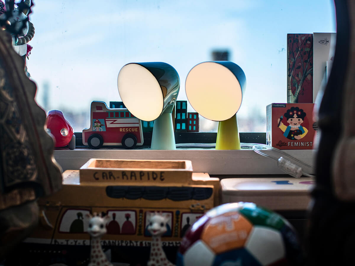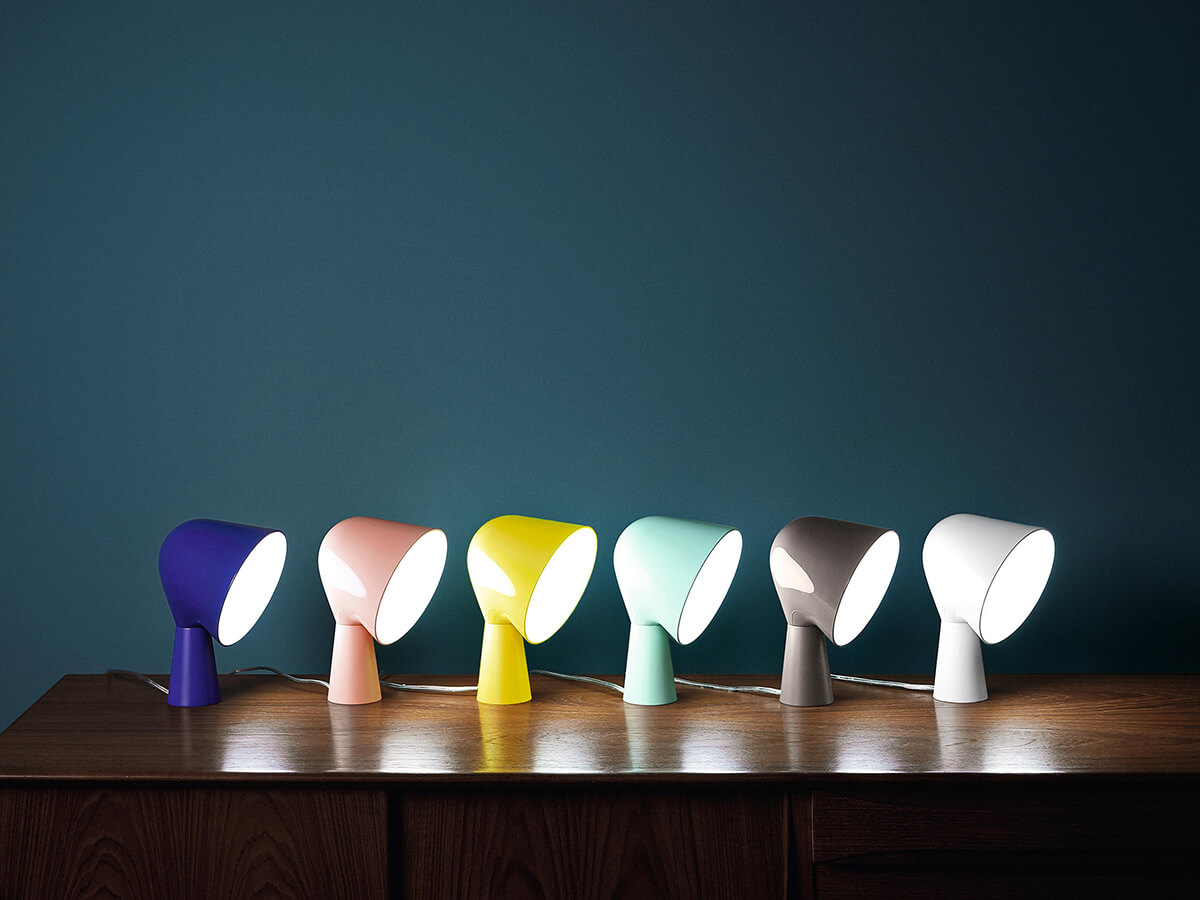 Piccola e allegra, la lampada Binic di Foscarini si caratterizza per le forme giocose e per i colori vivaci che la rendono un complemento piacevole per ogni genere di ambiente. Deve il suo nome a quello di un piccolo faro sulla costa della Bretagna, regione d’origine della designer Ioanna Vautrin. E proprio a un minuto faro potrebbe essere assimilata anche la silhouette di questa lampada, con una parte superiore stondata che si apre in un ampio diffusore per proiettare una luce circoscritta e ben definita. Anche il packaging della lampada, concepito direttamente dalla sua designer, è curato e piacevole, rendendola così perfetta come idea regalo: non è un caso che già nel primo anno della sua uscita, il 2010, ne siano stati venduti oltre 18.000 esemplari in tutto il mondo.