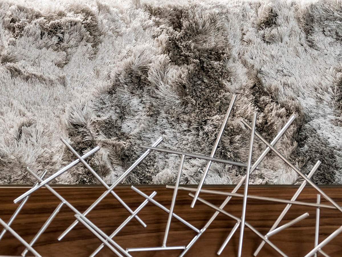 Le Materie Sottile è una collezione di tappeti dal design fortemente ispirato e dalla personalità particolarmente pronunciata, evidenziata dalla modernità con cui viene scelto ogni particolare, dalla fibra al colore, alle sfumature e altro ancora, fino al prodotto completo. La tessitura è spessa e sontuosa, fatta di fibre leggere di poliestere che al tatto si presentano come sorprendentemente robuste, solide e morbidissime. Importante è ricordare che il poliestere è resistente agli strappi e alle abrasioni, così come alle condizioni di ambienti umidi o non particolarmente adatti a questo tipo di arredo.