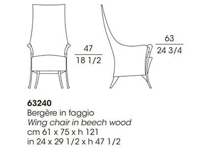 *Prezzo valido per la versione bergère in L.61 x P.75 x H.121 cm con struttura in faggio e rivestimento in tessuto cat. C - poggiatesta escluso (cod. 63240).