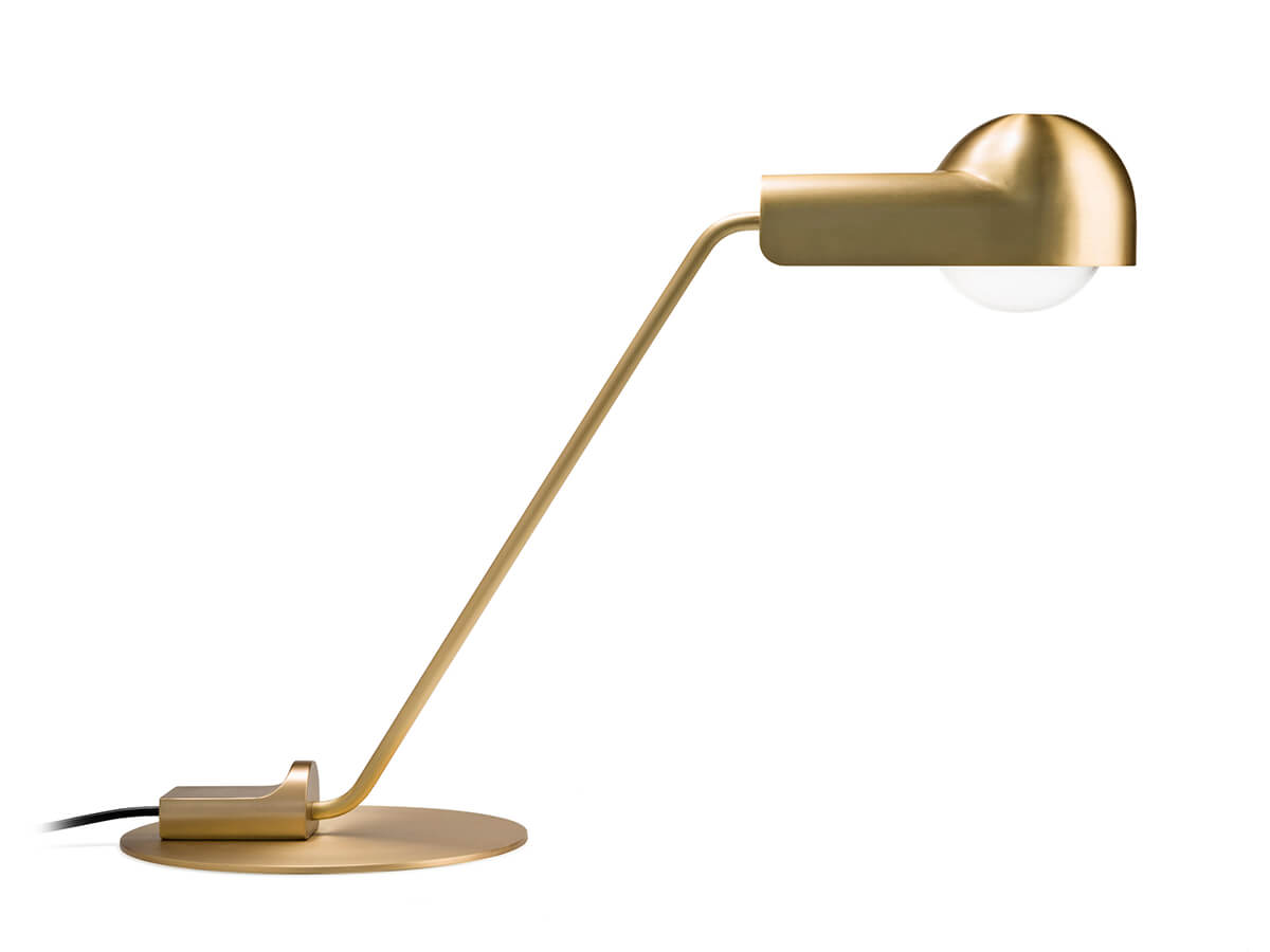 La lampada da tavolo Domo rappresenta la cultura e l’aspirazione progettuale dell’azienda Karakter, capace di dominare la scena con i propri arredi di grande bellezza e fascino. Nello specifico, Domo è stata disegnata da Joe Colombo secondo un dettame di essenzialità qui rappresentato dalla superficie in ottone spazzolato e vernice trasparente o acciaio con rivestimento a polvere nera. Peculiare è lo sfasamento fra la base e il diffusore, asimmetrici per donare leggerezza e flessibilità all’intero modello nel suo complesso. Un’opera che ben si adatta alle piccole superfici come scrivanie o scrittoi.