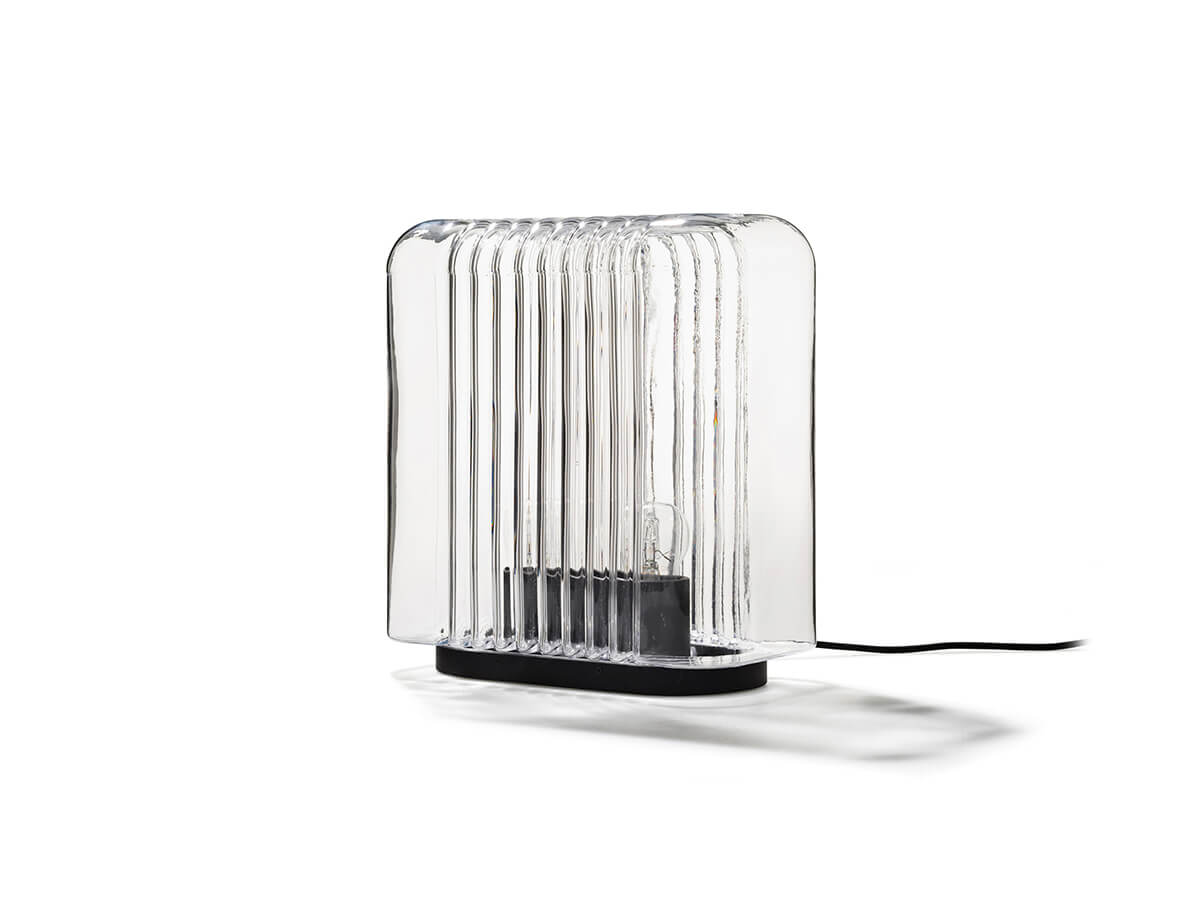Una lampada da tavolo sofisticata e incredibilmente elegante, capace di suscitare interesse e meraviglia in coloro che si soffermano a guardarla. Angelo Mangiarotti la disegna per Karakter sfruttando al meglio il potenziale del vetro soffiato a bocca, qui utilizzato in un unico pezzo elevato su una semplice base che funge da supporto. La forma di Lari è rettangolare oversize e la texture è semplice ma perfettamente calibrata così da offrire alla luce un ideale punto cui sprigionarsi all’interno dell’ambiente. Sobria e bilanciata, Lari si presta a utilizzi diversificati in ambienti anche molto diversi fra loro, offrendo sempre uno spunto di qualità all’interno dello spazio domestico.