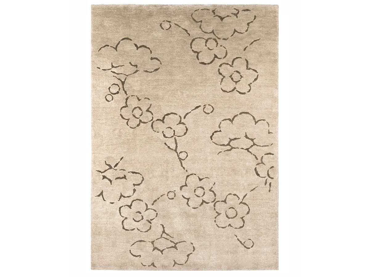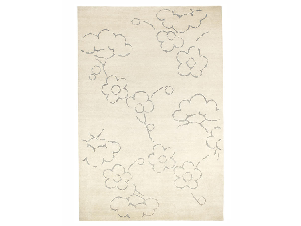 Dai delicati tocchi orientali, il tappeto Okoa di Kristiina Lassus trae ispirazione dalle forme dell’arte tradizionale giapponese. Il fiore rappresentato sulla sua superficie è l’Ume, candido bocciolo di pruno, che nella cultura giapponese è simbolo di vita e speranza. I fiori costellano il tappeto con una grazia rarefatta, che li fa somigliare più a un motivo astratto che ad una figurazione realistica. Realizzato a 100 nodi tibetani, con pelo raso, Okoa è disponibile in diverse varianti di colore che risultano in altrettante interpretazioni originali dello stesso motivo di fondo.