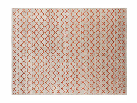 Un tappeto dove forte si distingue il segno stilistico, capace di creare rigore geometrico, ma anche, al contempo, un autentico esempio di pattern ambientale, che l’occhio coglie e gradisce. Fra le numerose proposte del marchio Kristiina Lassus, Oyo spicca per la sua apparente semplicità che tuttavia cela un prezioso studio estetico, comune a molte altre opere del marchio, qui evidenziato dal ripetersi di tratti arancioni e grigio scuro. In entrambi i casi, Oyo riempie l’ambiente, creando una sorta di tridimensionalità ovunque si decida di collocarlo, che si tratti di camere da letto, studi, soggiorni e altro ancora. La lavorazione vede intrecciarsi il lino naturale alla lana, con realizzazione in Nepal.