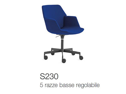 *Prezzo valido per la versione con n.05 razze su ruote e base in alluminio verniciato - rivestimento in tessuto cat. A - schienale H.82/92 cm (cod. S230NHA).