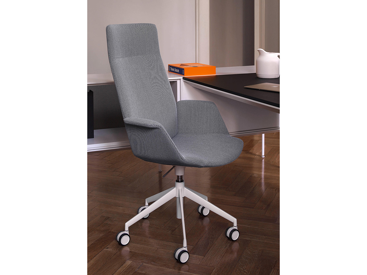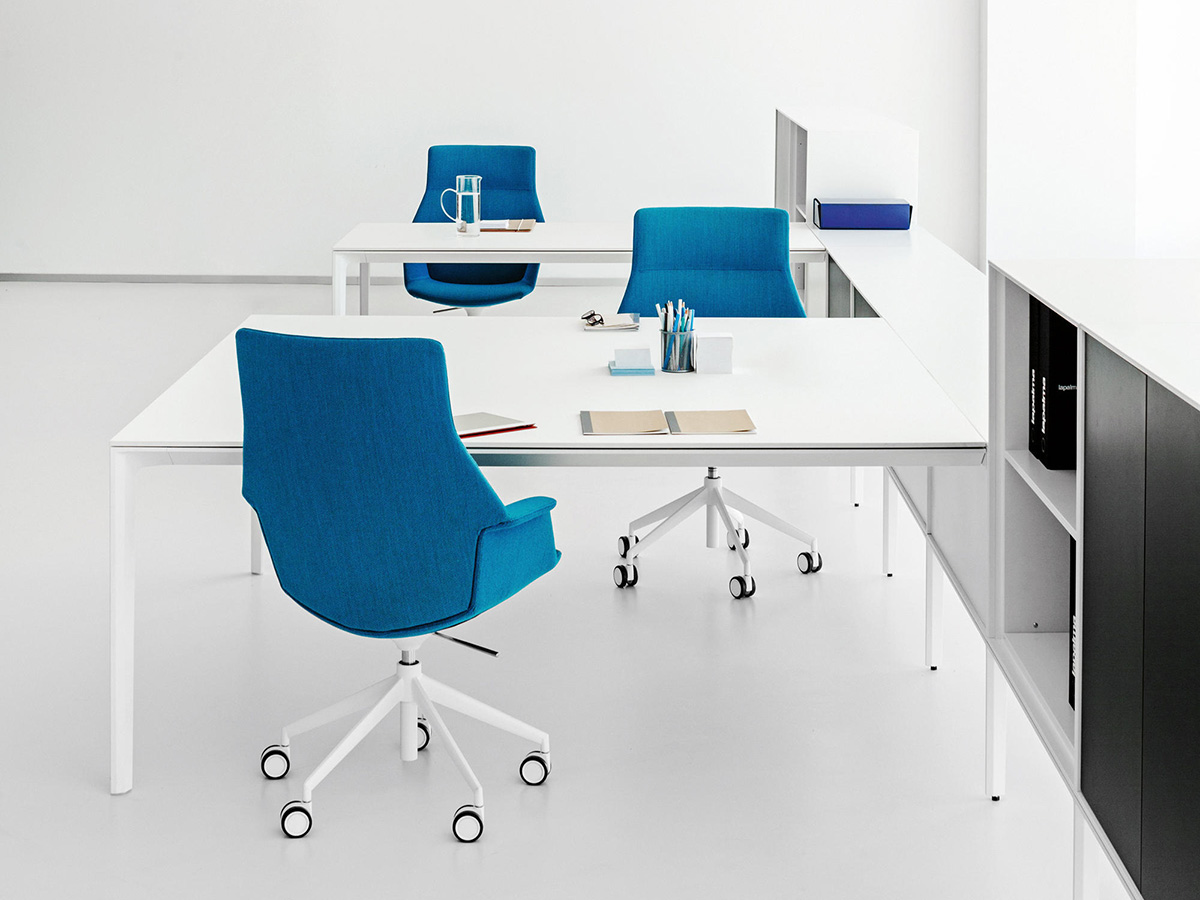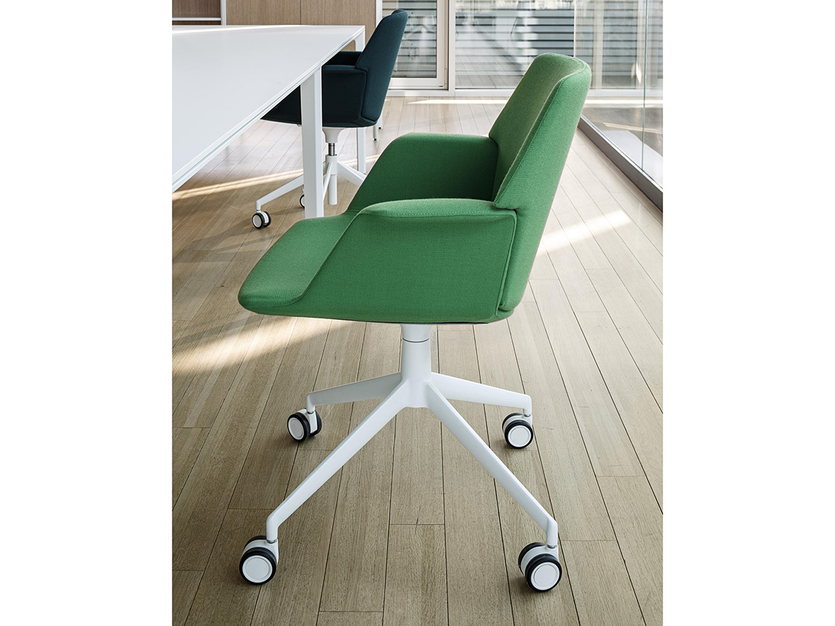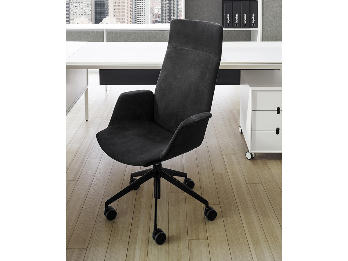 Il designer Francesco Rota progetta per il brand La Palma la collezione di poltrone da ufficio Uno, con un design essenziale e molto versatile. La seduta, sempre uguale a sé stessa e caratterizzata da una scocca con braccioli, si declina nelle diverse varianti della collezione che presentano schienali alti, come nella versione executive, o bassi come nella versione guest o lounge. Le basi possono essere girevoli a stella o regolabili in altezza con quattro o cinque razze dotate di ruote. Le combinazioni possibili e l’ampia scelta di tessuti, pelle ed ecopelle dei rivestimenti, permettono di soddisfare le esigenze del cliente arredando con stile uffici ma anche ambienti domestici dedicati alla lettura e al relax.