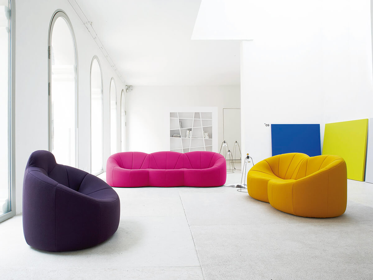 Un elemento d’arredo particolarmente gradevole e ben riuscito, che sembra adattarsi e sposarsi perfettamente al gusto dei nostri tempi. Nata nel 1971 dal genio di Pierre Pauline, Pumpkin viene realizzata in poliestere espanso con base in abs termoformato. Si differenzia fra versione fissa e girevole, con schienale basso e schienale basso. Il nome si deve alla caratteristica forma a “zucca”, derivata dalla costituzione stessa dell’imbottito. Originariamente ideata per gli appartamenti privati di Claude e Georges Pompidou, oggi si può trovare in qualunque contesto living e night domestico, oltre che in numerose aree pubbliche dove sia richiesta una seduta pratica e di facile utilizzo.