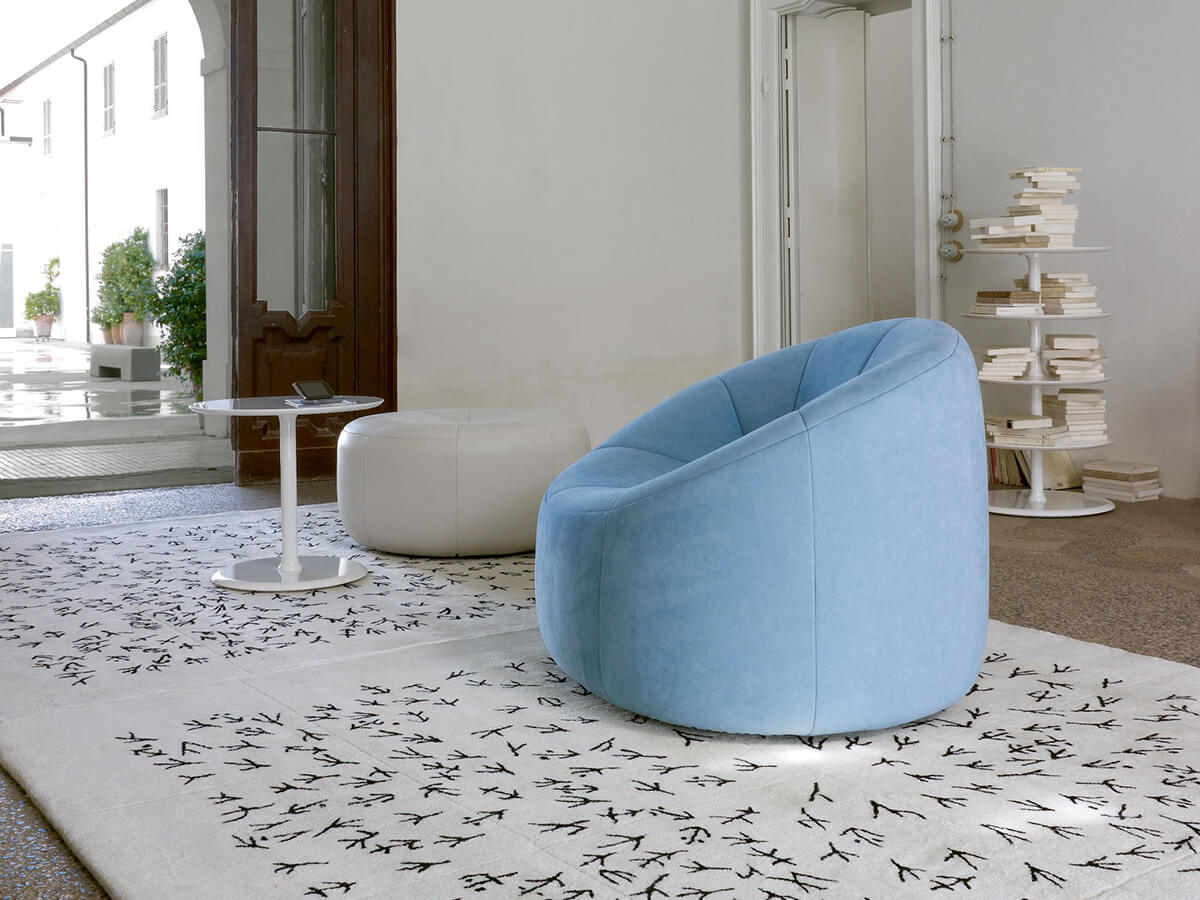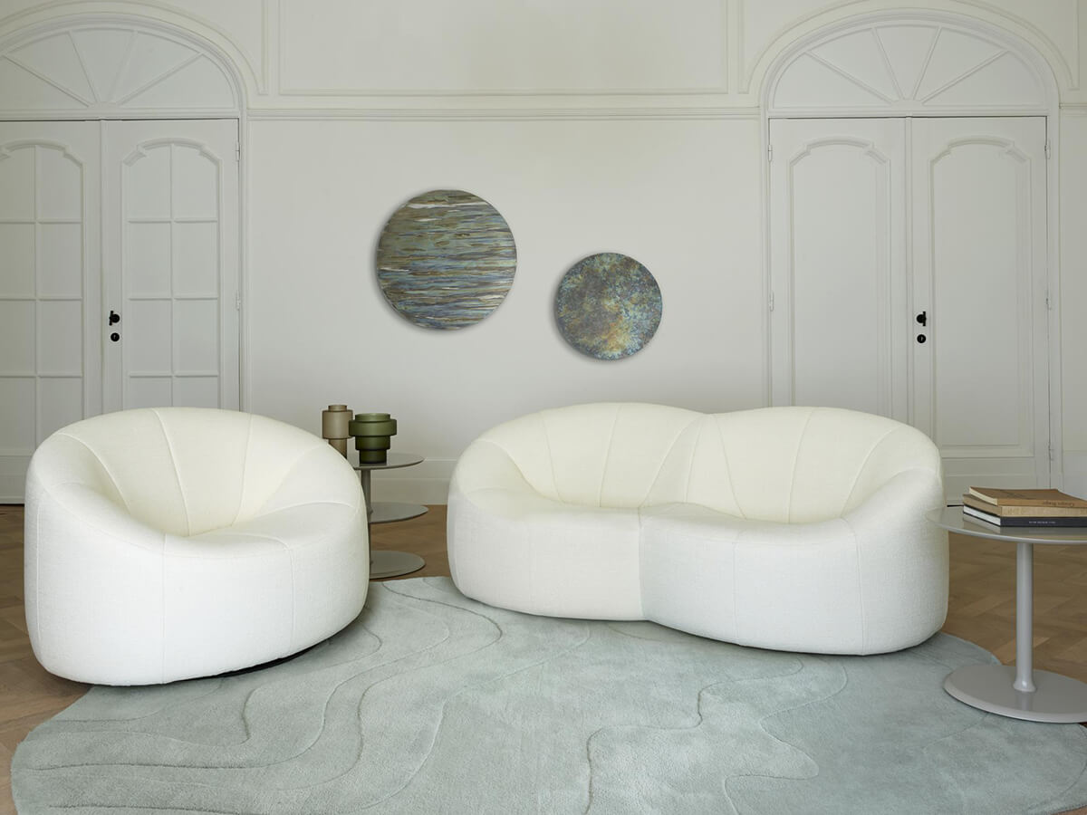 Un elemento d’arredo particolarmente gradevole e ben riuscito, che sembra adattarsi e sposarsi perfettamente al gusto dei nostri tempi. Nata nel 1971 dal genio di Pierre Pauline, Pumpkin viene realizzata in poliestere espanso con base in abs termoformato. Si differenzia fra versione fissa e girevole, con schienale basso e schienale basso. Il nome si deve alla caratteristica forma a “zucca”, derivata dalla costituzione stessa dell’imbottito. Originariamente ideata per gli appartamenti privati di Claude e Georges Pompidou, oggi si può trovare in qualunque contesto living e night domestico, oltre che in numerose aree pubbliche dove sia richiesta una seduta pratica e di facile utilizzo.