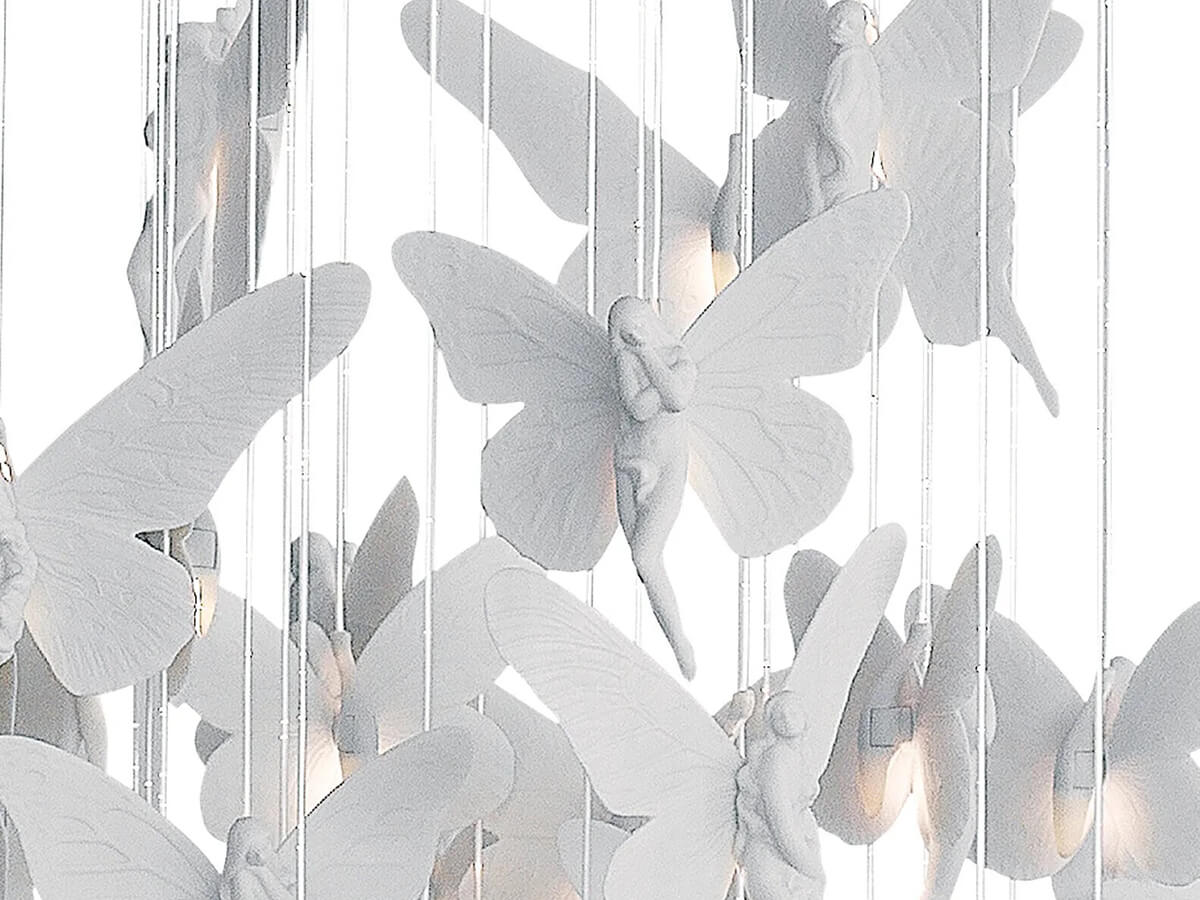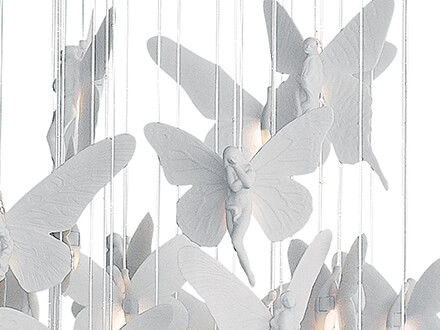 Una lampada dal gusto enigmatico, capace di catalizzare diverse tendenze in un unico design senza precedenti, mozzafiato. Niagara è una lampada a sospensione costituita da numerose fatine di porcellana opache bianche e realizzate a mano. Ognuna viene creata e appesa a una fibra ottica con piccoli punti luce per formare una vera e propria cascata luminosa. Il design è incredibile e di certo fuori dagli schemi, adatto ad ambienti particolari dove si cerchi un elemento luminoso di egual peso. La resa è molteplice a luci spente o accese, poiché Niagara cambia forma, trasformandosi in una scultura e opera d’arte in pochi secondi.