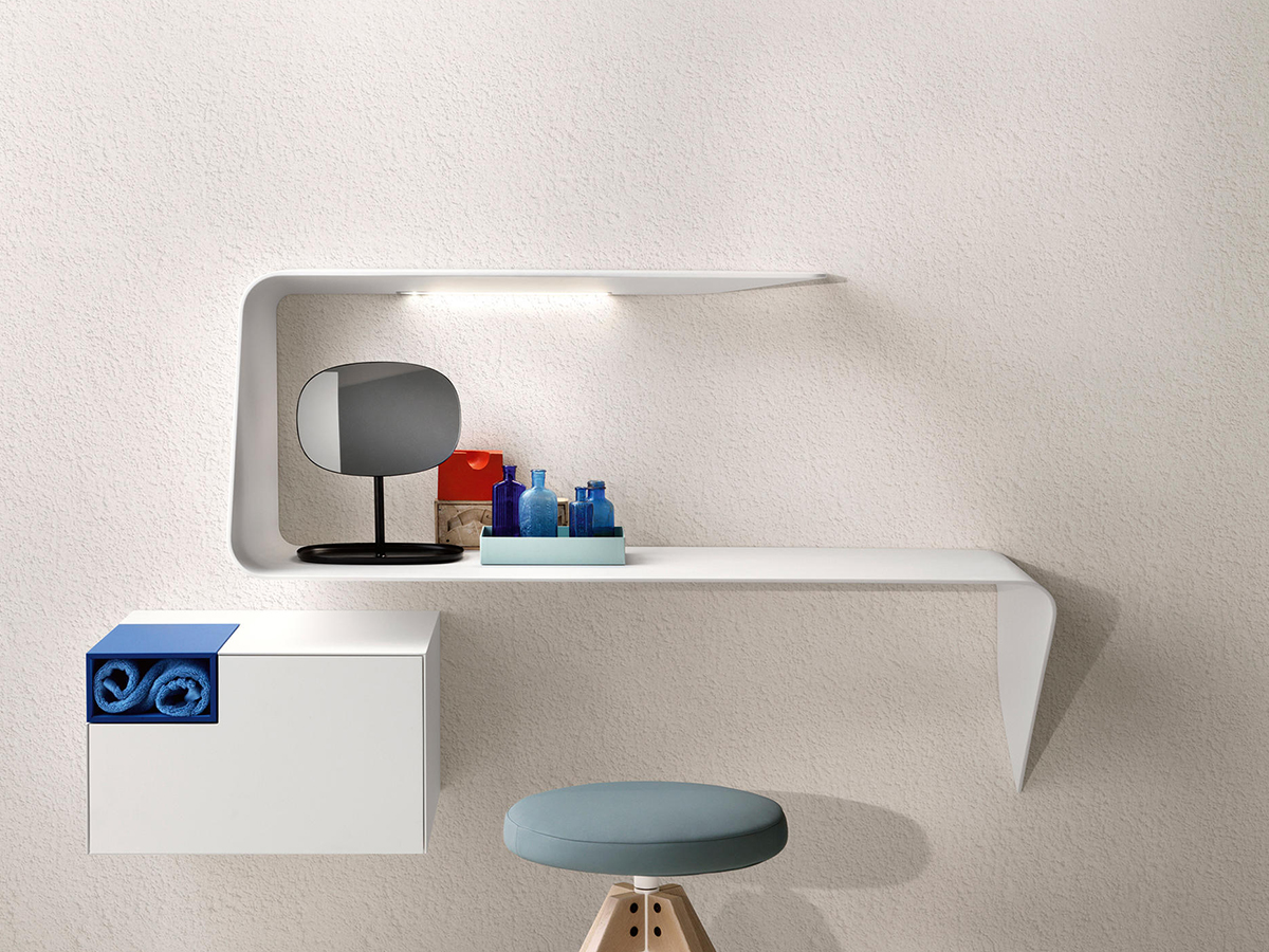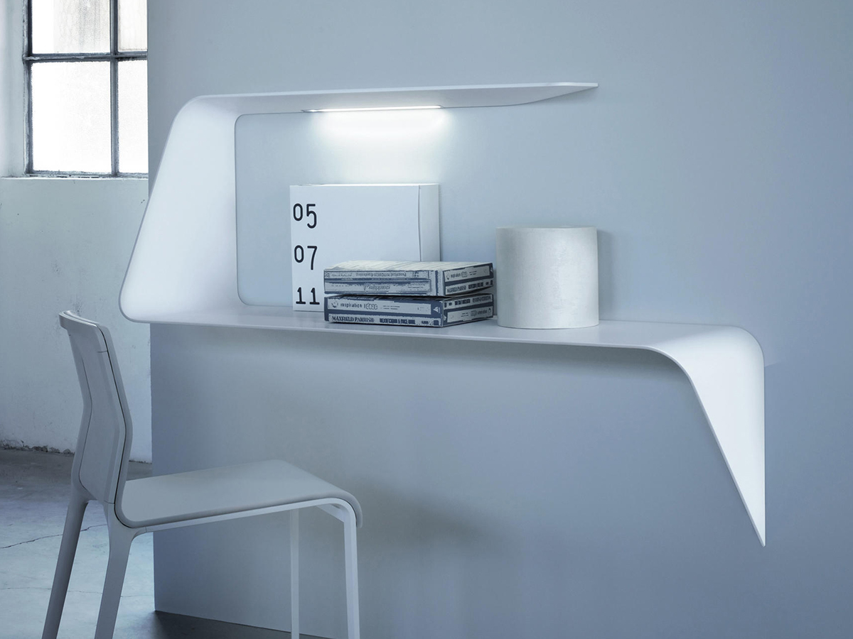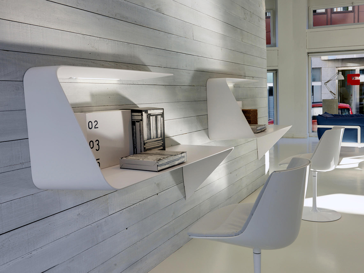 Lo stile dell’azienda MDF Italia incontra la grande capacità immaginativa di Victor Vasilev nel dare vita a una mensola fuori dagli standard, capace di riassumere la voglia di sperimentare e osare per meglio accostarsi al gusto e alle esigenze del mondo contemporaneo. L’idea di Mamba è creare un ambiente perfetto per l’home office, dove chiunque possa allestire il proprio spazio privato con gusto e senza venir meno a una esigenza funzionale sempre più presente in questi giorni. Questa mensola disegna una linea continua sul muro che lascia libero spazio alla personalizzazione e alla capacità di improvvisare un design essenziale, esplicito nelle proprie intenzioni. Le sue dimensioni la rendono utilizzabile sia come scrivania che come scrittoio e mensola.