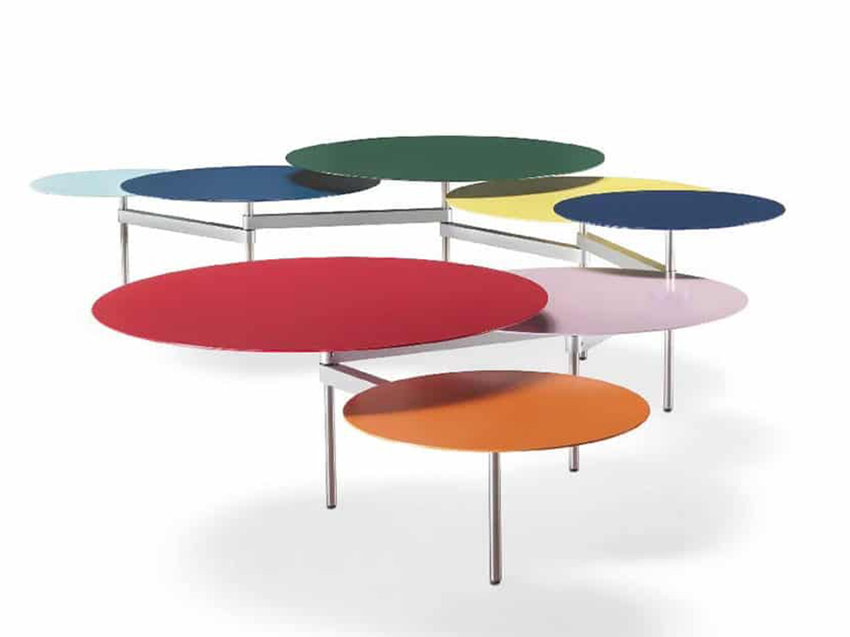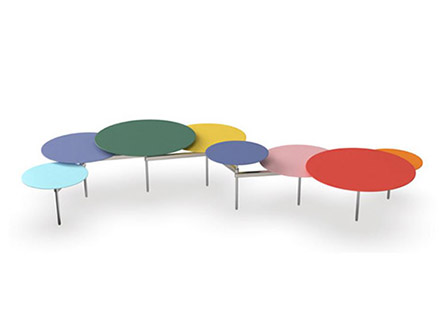 Il tavolino Snake nasce come elemento basso e polimorfo, composta da una serie di superfici circolari collegate fra loro attraverso un sistema snodabile che dona all’insieme movimento ed enormi possibilità di configurazione. Con quest’opera, Meritalia celebra ancora una volta il radical design, creando una composizione che celebre l’irrequietezza negando la fissità di composizioni che vivono in modo finito e duraturo. Snake invece è fatta per cambiare, per orchestrare giochi di colori e dimensioni, superfici e disposizioni imprevedibile. Per propria natura Snake vive bene all’interno di salotti, ma può comunque prestarsi a utilizzi più vari in spazi comuni, sale d’attesa, studi e molto altro ancora.