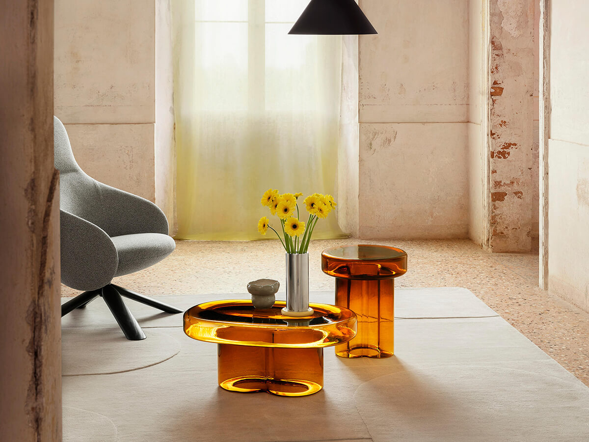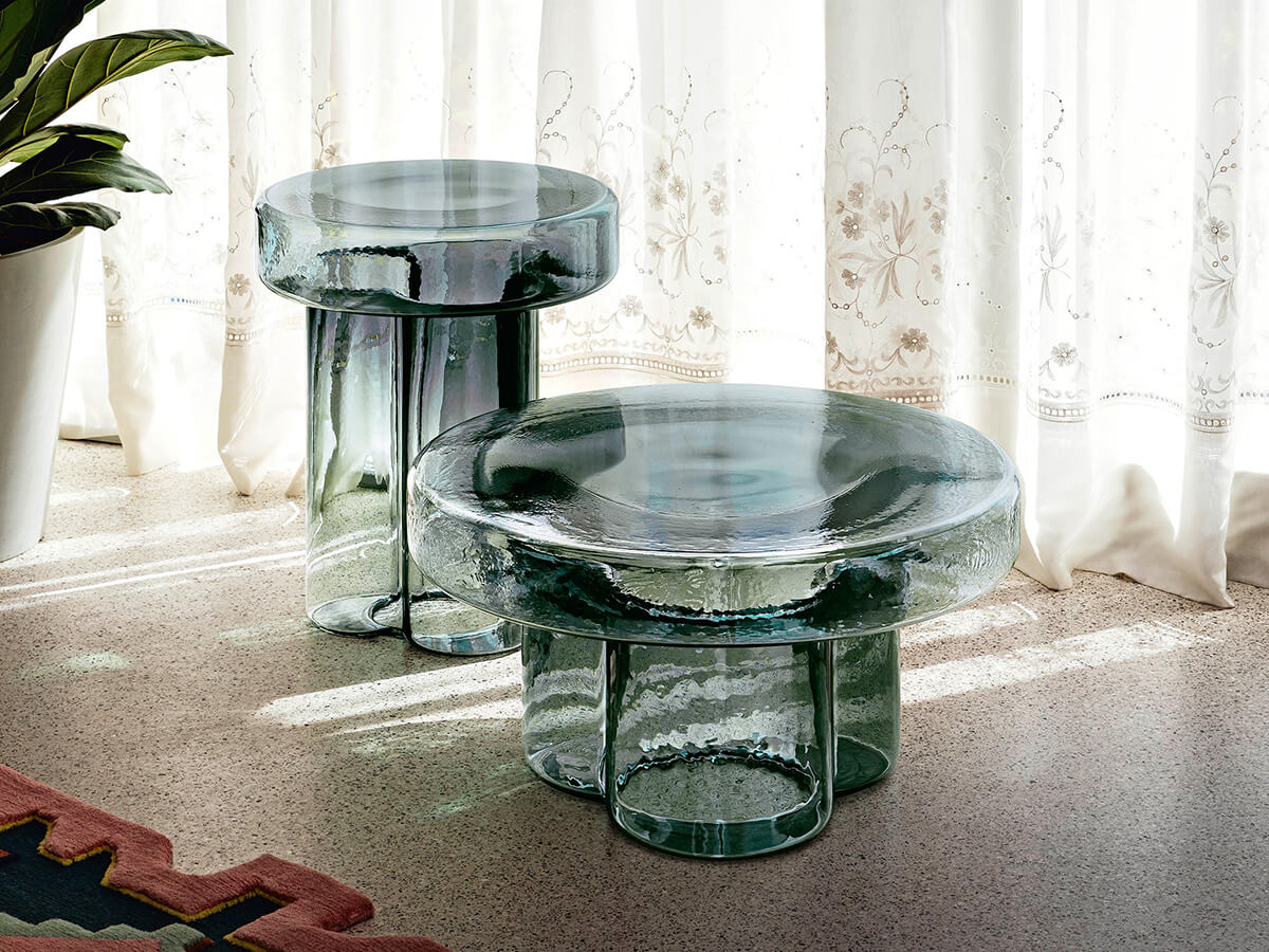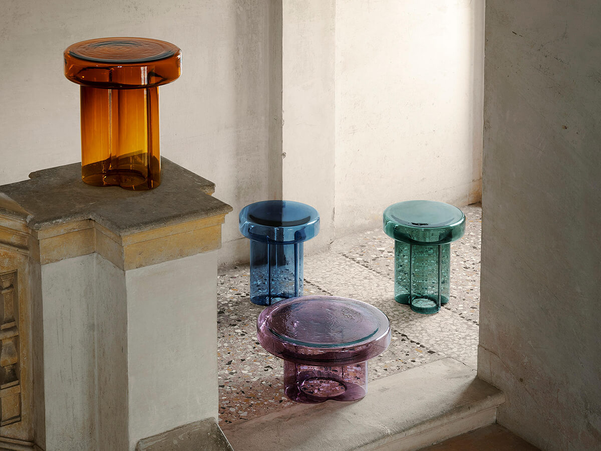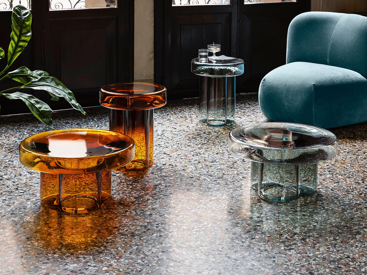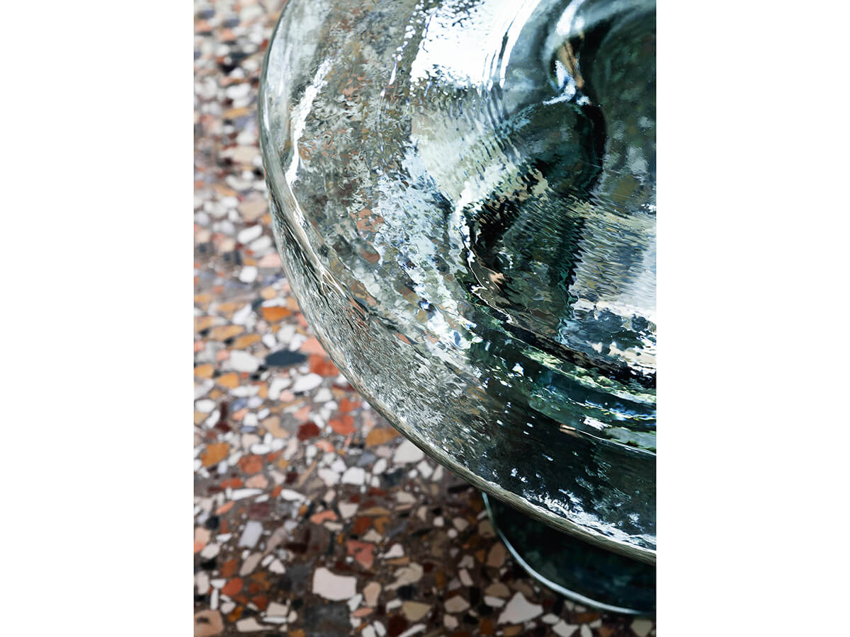 Effervescente ed estremamente contemporaneo, Soda spicca fra i tavolini per l’originalità del disegno e dei materiali utilizzati, capaci insieme di creare un tutt’uno fantasioso che spicca in qualunque ambiente. Soda si compone di un unico blocco di vetro soffiato di Murano e presenta tre petali che fanno da fusto per sollevare da terra il piano del tavolino. Omaggio all’arte sempre più lontana di questi maestri del vetro, Soda presenta una superficie quasi primitiva, dura e martellata per esaltarne l’aspetto più materico. Ideale per spazi comuni del soggiorno, si presta bene anche in situazioni più diversificate, donando sempre il proprio personale contributo alla progettualità interna.