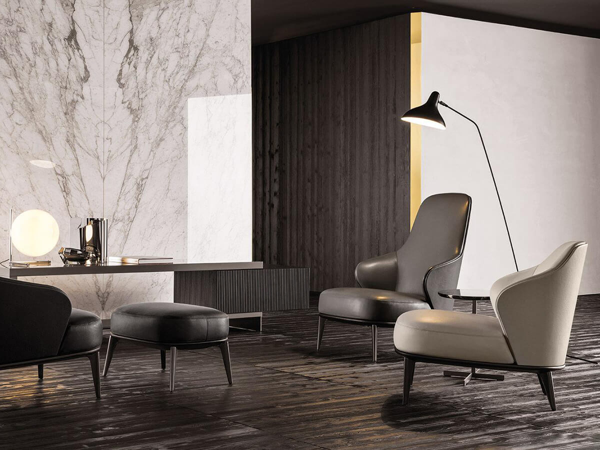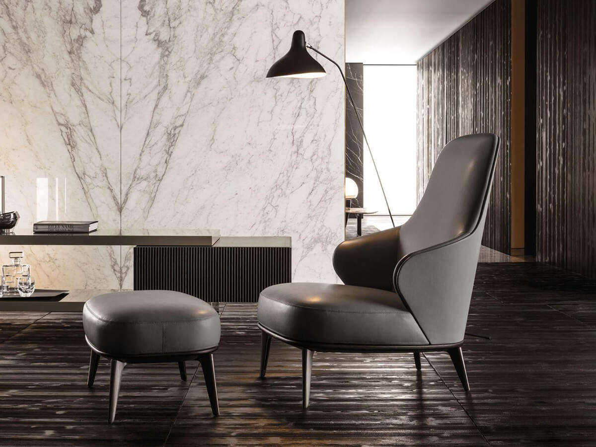 Comoda e avvolgente, Leslie rappresenta l’ideale di poltrona sulla quale rilassarsi e stemperare le tensioni del vivere quotidiano. La famiglia di sedute Leslie comprende bergère, poltrone con o senza braccioli e un versatile poggiapiedi, perfetto per migliorare ancor più il comfort. Il carattere distintivo di questo elemento della zona living è l’esattezza delle proporzioni e l’alta sartorialità dei rivestimenti, disegnati così da calzare come un guanto sia che si tratti di pelle o tessuto. La comodità di Leslie è garantita dal guscio esterno in poliuretano strutturale espanso stampato a caldo e interamente rivestito in pelle, associato a una scocca schiumata interna. La cura dei dettagli Minotti garantisce inoltre un’estetica impeccabile, ideale per chi desideri arredare con gusto e classe.