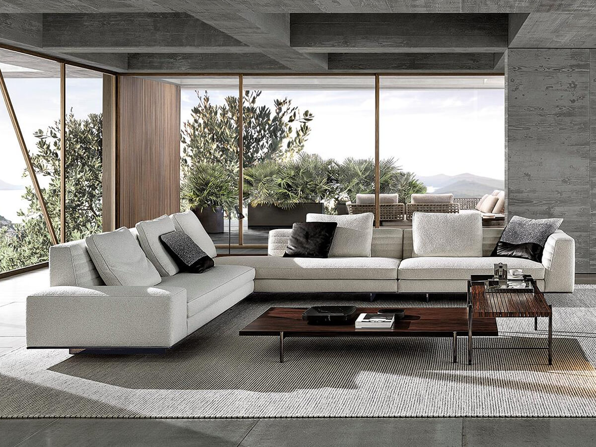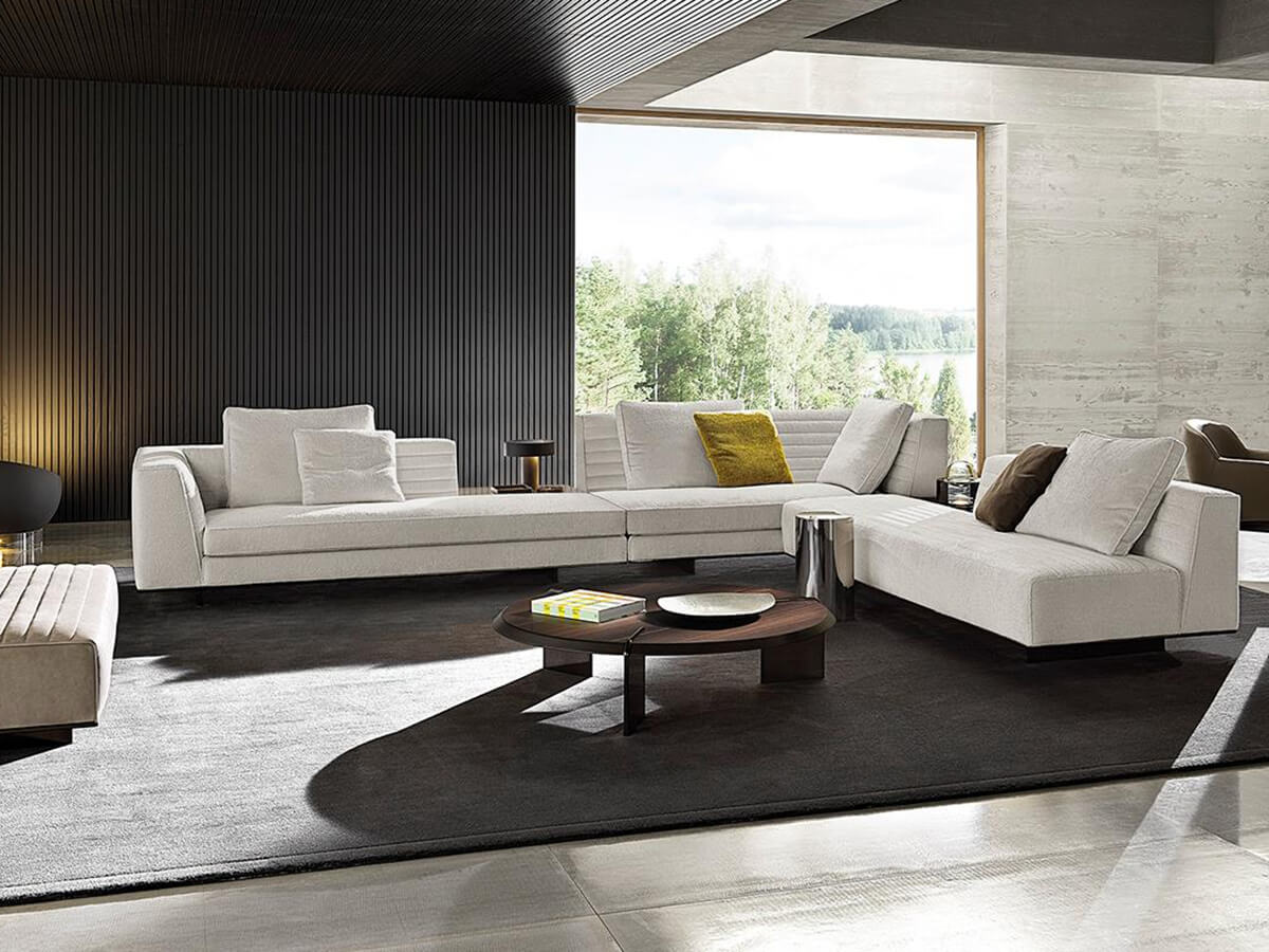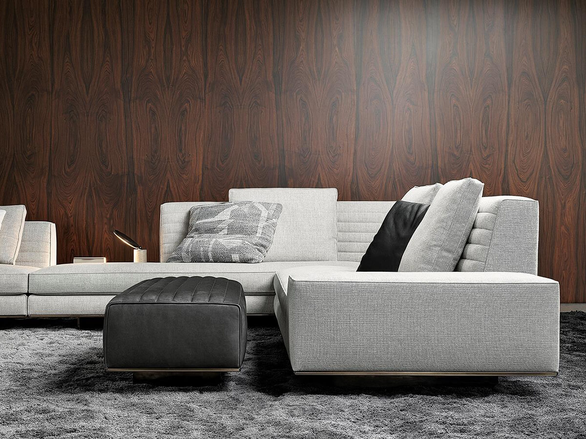 Il sistema di sedute Roger nasce dalla collaborazione tra il designer Rodolfo Dordoni e il noto brand Minotti. La combinazione di tre tipologie di elementi diversi, ciascuno con le proprie caratteristiche strutturali, e l’ampia scelta di braccioli e di elementi d’appoggio e contenimento permettono la realizzazione di numerosi progetti sempre nuovi ed originali. La trapuntatura grafica a lunghe linee orizzontali che corre lungo gli schienali e le sedute dà grande morbidezza e ricchezza alle superfici grazie anche alla tappezzeria sofisticata e alla confezione sartoriale. Le lame trasversali che sollevano il divano da terra sono quasi impercettibili e danno l’impressione che il divano sia sospeso nello spazio. Estremamente versatile Roger risponde ad ogni esigenza d’arredo contemporaneo sia in ambito residenziale che hospitality.