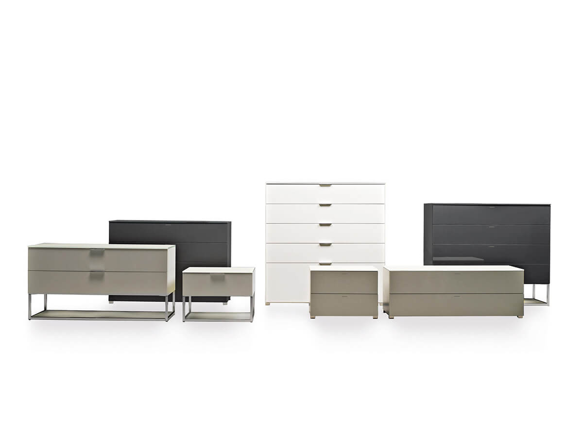 909 comprende una gamma di proposte di estremo rilievo e gusto estetico, capaci di incarnare razionalità e al contempo tradizione. Fra cassettiere modulari e comodini, 909 spicca per la possibilità di creare elementi modulati utilizzabili singolarmente o composti fra loro per creare composizioni più dinamiche e personalizzate. Le diverse finiture disponibili rendono più che soddisfacente la gamma di scelta per meglio esaltare ogni ambiente in cui i singoli elementi verranno collocati. *Caratteristiche tecniche: piedini disponibili in cromo lucido oppure nero; cassetti con apertura a pressione o con maniglia in finitura cromata oppure verniciata peltro; gli elementi con vano a giorno possono essere dotati di kit di illuminazione