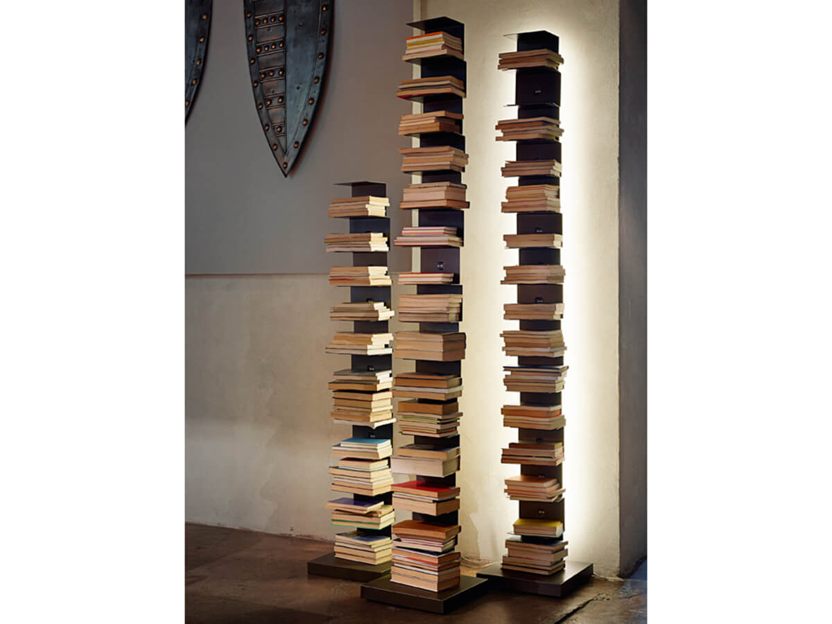 Un classico dell’arredo moderno. Ptolomeo è una libreria self standing dal design semplice e rigoroso, essenziale per lasciar posto all’ospite principale per cui è stata concepita: i libri. Ptolomeo elimina il superfluo connotandosi essenziale per un’unica colonna in acciaio a cui sono unite delle sottili mensole anch’esse in acciaio. Le mensole scompaiono man mano che la colonna si riempie di libri. Fin dalla sua nascita nel 2004 si è attestata come un’icona del design di settore, strutturandosi poi in diverse altezze fissate sulla solida base in acciaio inox o in metallo laccato coordinato con la struttura appositamente studiata per garantirne la stabilità.