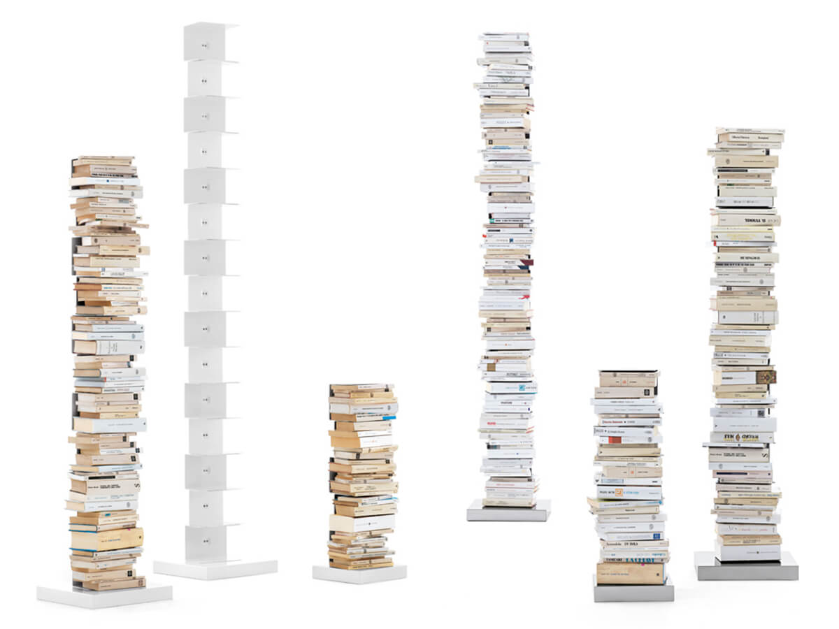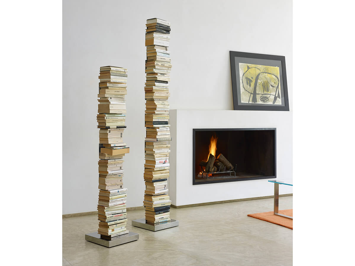 Un classico dell’arredo moderno. Ptolomeo è una libreria self standing dal design semplice e rigoroso, essenziale per lasciar posto all’ospite principale per cui è stata concepita: i libri. Ptolomeo elimina il superfluo connotandosi essenziale per un’unica colonna in acciaio a cui sono unite delle sottili mensole anch’esse in acciaio. Le mensole scompaiono man mano che la colonna si riempie di libri. Fin dalla sua nascita nel 2004 si è attestata come un’icona del design di settore, strutturandosi poi in diverse altezze fissate sulla solida base in acciaio inox o in metallo laccato coordinato con la struttura appositamente studiata per garantirne la stabilità.