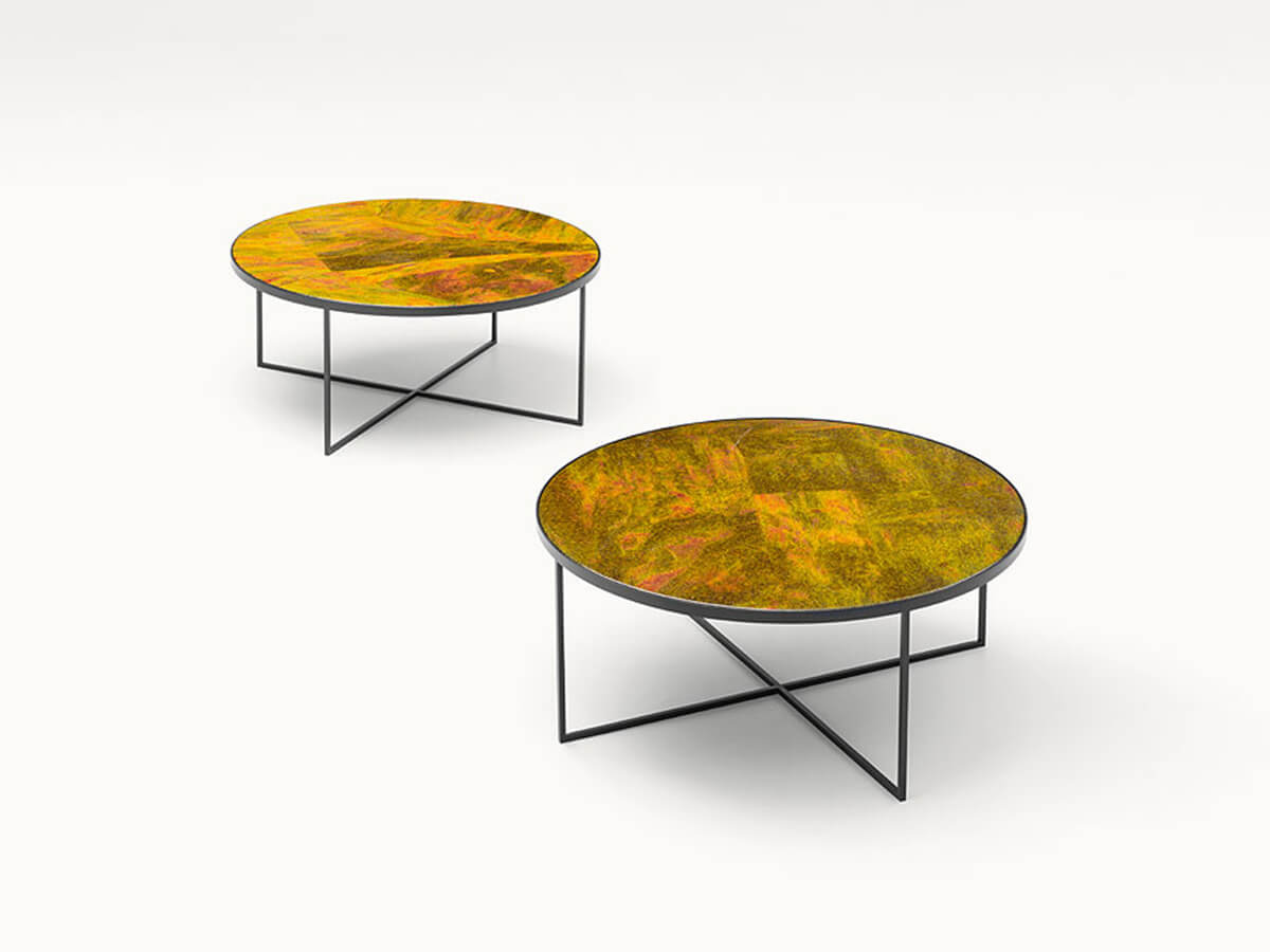 Un articolo d’arredo dal design fresco e atipico, ideale per chi desideri creare un elemento di gusto all’interno di spazi living all’aperto. Ideale su terrazze e solarium, Sciara riesce a dare il meglio di sé anche in giardini e spazi pubblici all’aria aperta. Disponibile in diverse dimensioni, la collezione comprende anche consolle e tavoli da pranzo. La struttura è in acciaio inox verniciato opaco in diversi colori. La superficie di appoggio è in alveolare di alluminio verniciato. Il piano può essere intero o composto da più elementi in lava con decoro in vetro di grande bellezza. Caratteristiche tecniche: piano in lava con decoro in vetro