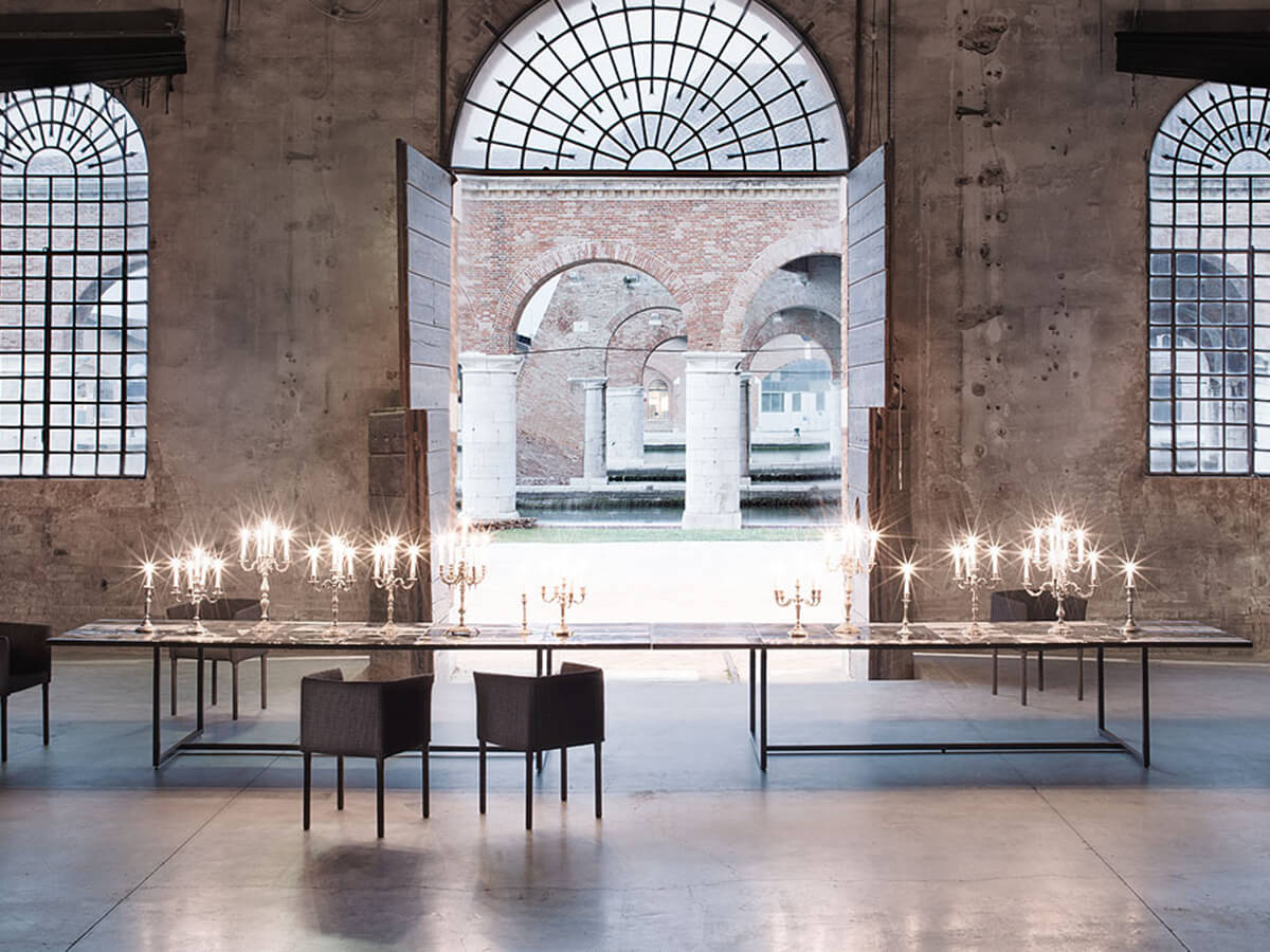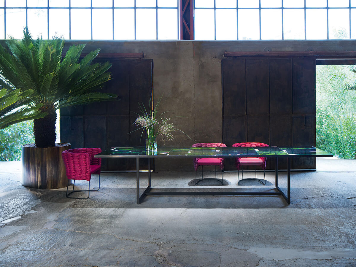 Un tavolo da pranzo particolarmente armonioso ed elegante, perfetto per ambienti all’aperto dove si voglia proporre un po’ di ricercatezza, stile e lusso insieme. La collezione Sciara comprende tavolini, tavoli da pranzo e persino consolle in diverse dimensioni, perfetti per chi desideri scelte diverse fra cui optare. La struttura è in acciaio inox con superficie di appoggio alveolare di alluminio verniciato in abbinamento alla piattaforma sovrastante. Il piano può essere intero, come nel caso della consolle, o composto da più elementi in lava con decoro in vetro. La resa estetica è davvero unica e preziosa, ideale completamento dei numerosi arredi Paola Lenti. Sciara è disponibile in numerose colorazioni. Caratteristiche tecniche: struttura in acciaio verniciato grigio lava e piano in lava con decori in vetro
