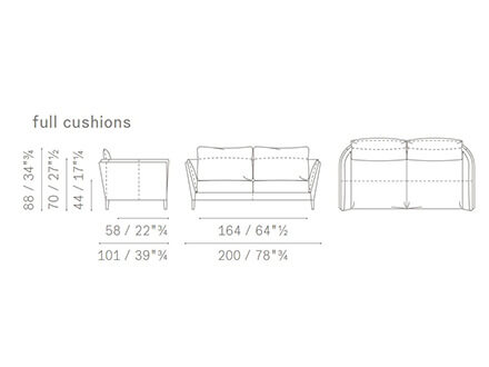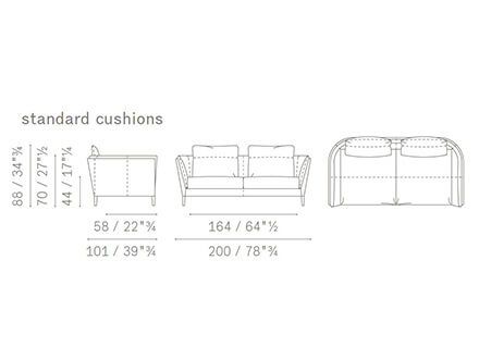 *Prezzo valido per la versione due posti L.200 cm con cuscini standard – struttura e base in pelle SC – superficie interna e cuscini in tessuto cat. B – piedini in alluminio finitura canna di fucile (cod. 5537211 - 5PF0053706709).