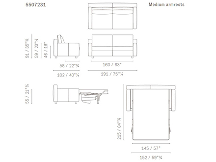 *Prezzo valido per la versione con braccioli medi in L.191 cm con rivestimento in tessuto cat. B (cod. 5507231 - 5PF0050706558).