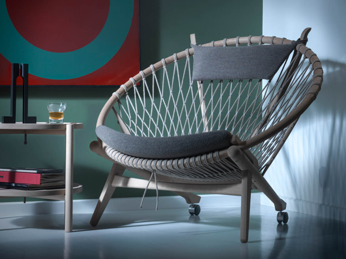 La poltrona PP130 Circle Chair di PP Møbler è una delle creazioni più suggestive del periodo più tardo di uno dei più grandi maestri del design danese, Hans J. Wegner, che la disegnò nel 1986 all’età di settantadue anni. Era un progetto che Wegner aveva sognato a lungo, senza però riuscire a metterlo mai in produzione a causa della sua grande difficoltà tecnica. La Circle Chair si basa su una forma perfetta e archetipica, quella del cerchio, che racchiude in sé le funzioni di seduta e schienale della poltrona. Leggera nella forma e nel peso, questa poltrona presenta uno schienale quasi impalpabile realizzato da una rete di nylon: la poltrona assume così una valenza architettonica eterea, lasciando intravedere con chiarezza tutto l’ambiente retrostante, caratteristica che l’ha resa un prodotto adorato dai più grandi interior designer di tutto il mondo.